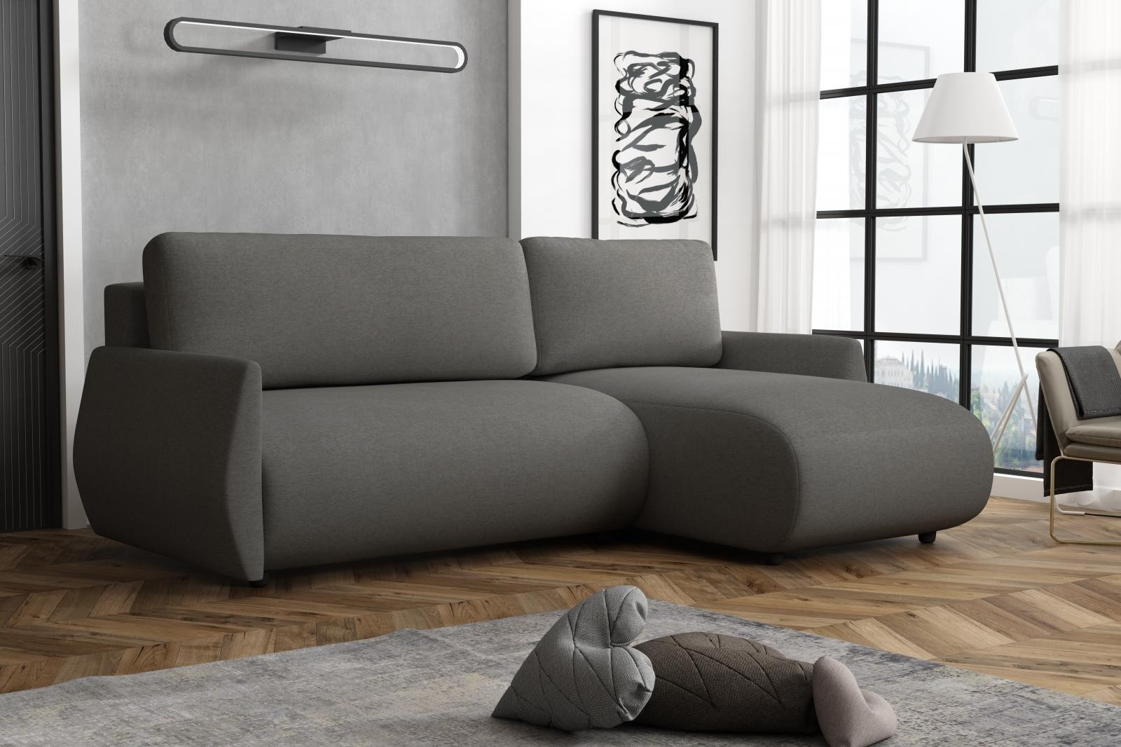 Velkou předností této sedací soupravy je univerzální možnost sestavení. Tzn. že podle potřeby můžete mít levou nebo pravou stranu, což je výhoda při zařizování obývacího pokoje. Nemusíte přemýšlet do jakého rohu sedací soupravu postavíte a jednoduše si ji podle potřeby přizpůsobíte.
