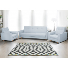 Sedací souprava Gala potěší milovníky Retro designu. Pohovka je rozkládací a samozřejmostí je i praktický úložný prostor. Retro styl podtrhují dřevěné nožky a prošití s vtahy. Je potažena látkou v pastelových barvách a můžete si vybrat ze 4 atraktivních odstínů. Výplň sedáku tvoří kombinace pružin bonell s kvalitní PUR pěnou. Jednoduchým rozložením pomocí systému klik-klak vznikne lůžko k občasnému přespání. Vyobrazené dekorace nejsou v ceně.