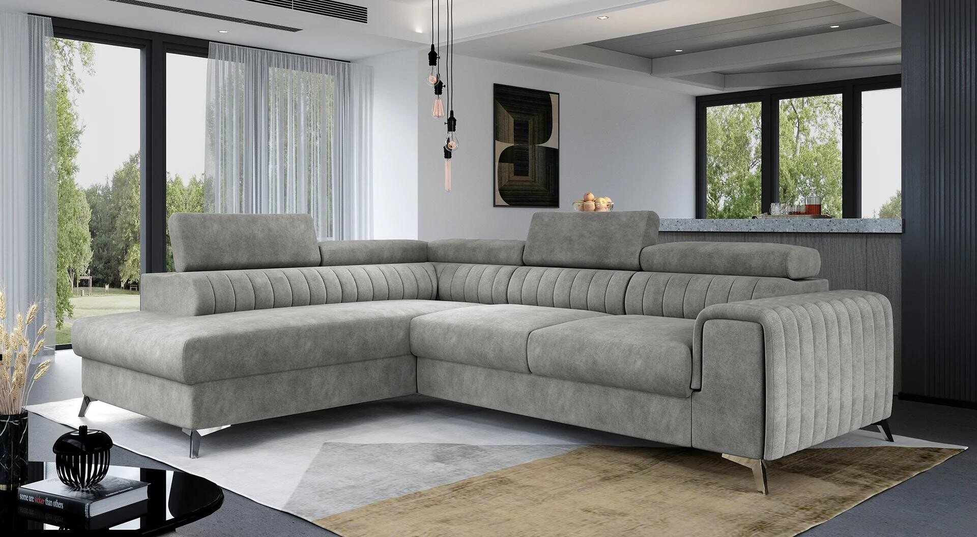 Laurence je stylová, funkční a především elegantní rohová pohovka pro náročné znalce pohodlí. Vysoký komfort odpočinku je zvýšen nastavitelnými vysokými opěrkami hlavy a širokým sedadlem. Nábytek o rozměrech 278 x 205 x 92 cm je vyroben z vlnité pružiny typu B, pěny T30 a HR, což zajistí nejvyšší komfort při každodenním používání pohovky během dne, stejně jako postele po setmění, protože díky funkci typu delfín je rohová sedačka Laurence vhodná i pro noční odpočinek. Rohová pohovka ve tvaru L je vybavena funkcí spaní o rozměrech 123 x 193 cm. Kromě toho má také prostorný úložný prostor na lůžkoviny. S elegantním prošíváním a 9 cm ocelovými nohami je rohová pohovka udržována v moderním stylu dokončení. Produkt je dostupný ve všech látkách z kolekce Eltap. Pokud hledáte závan čerstvého vzduchu a modernistický nádech - Laurence bude pro vás jistě perfektní.