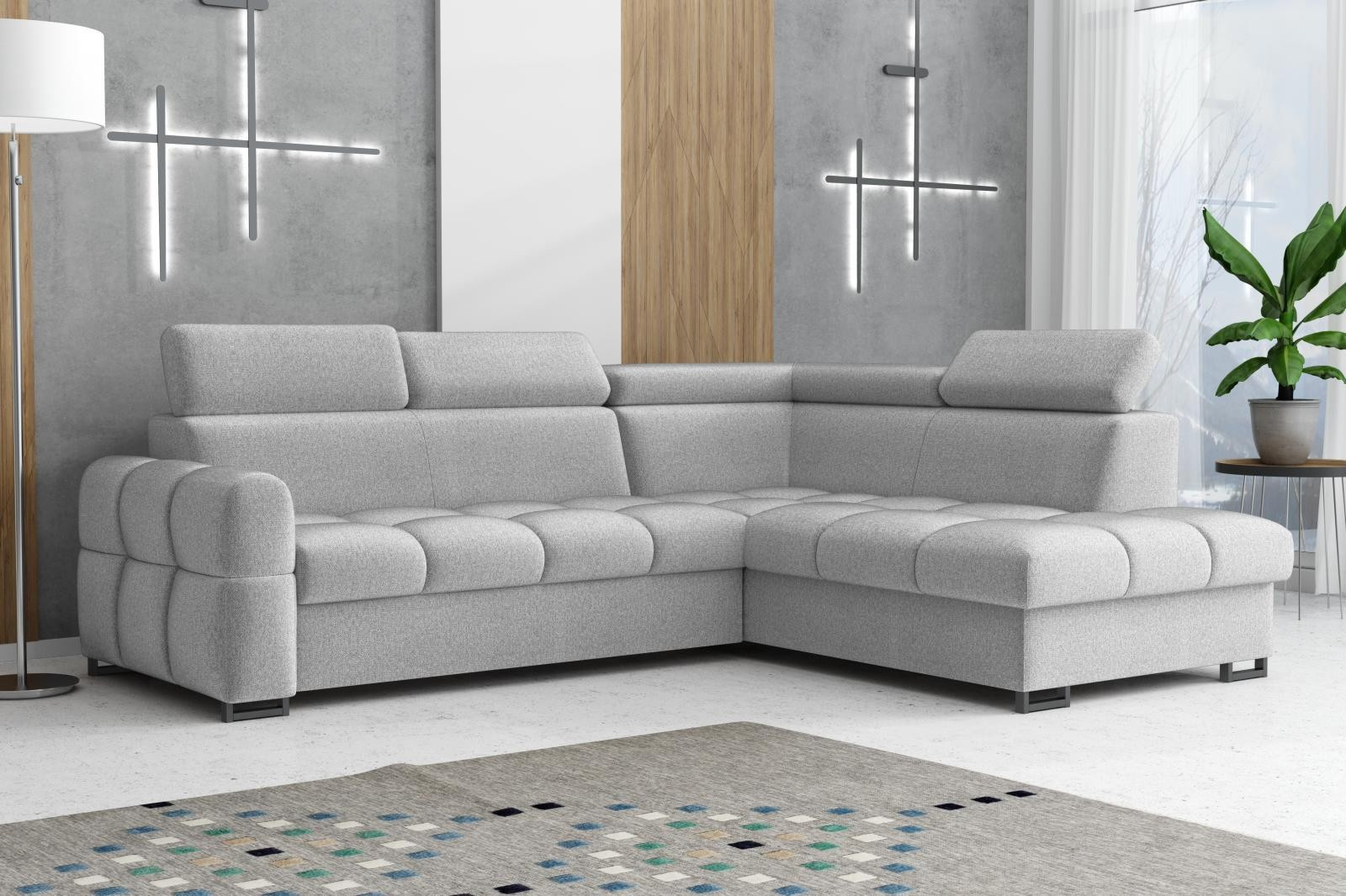 Sedací soupravu nabízíme v levém i pravém provedení. Správná barva potahové látky je zobrazena na první a druhé fotografii. Ostatní fotografie jsou pouze ilustrační.