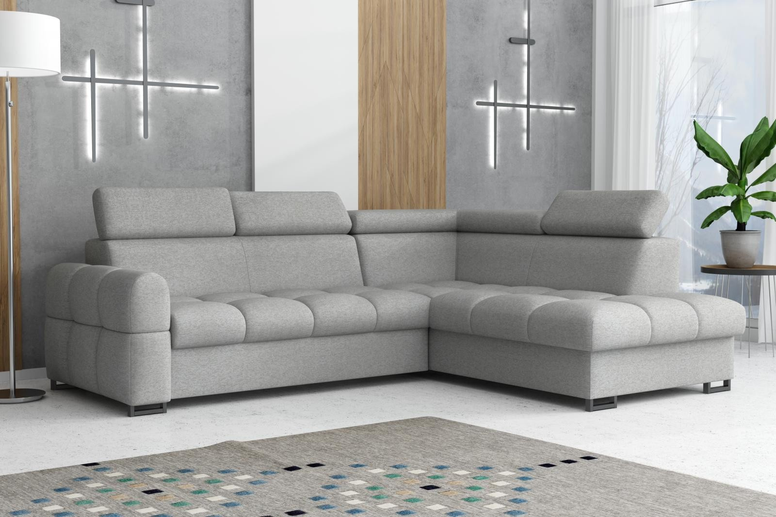 Sedací soupravu nabízíme v levém i pravém provedení. Správná barva potahové látky je zobrazena na první a druhé fotografii. Ostatní fotografie jsou pouze ilustrační.