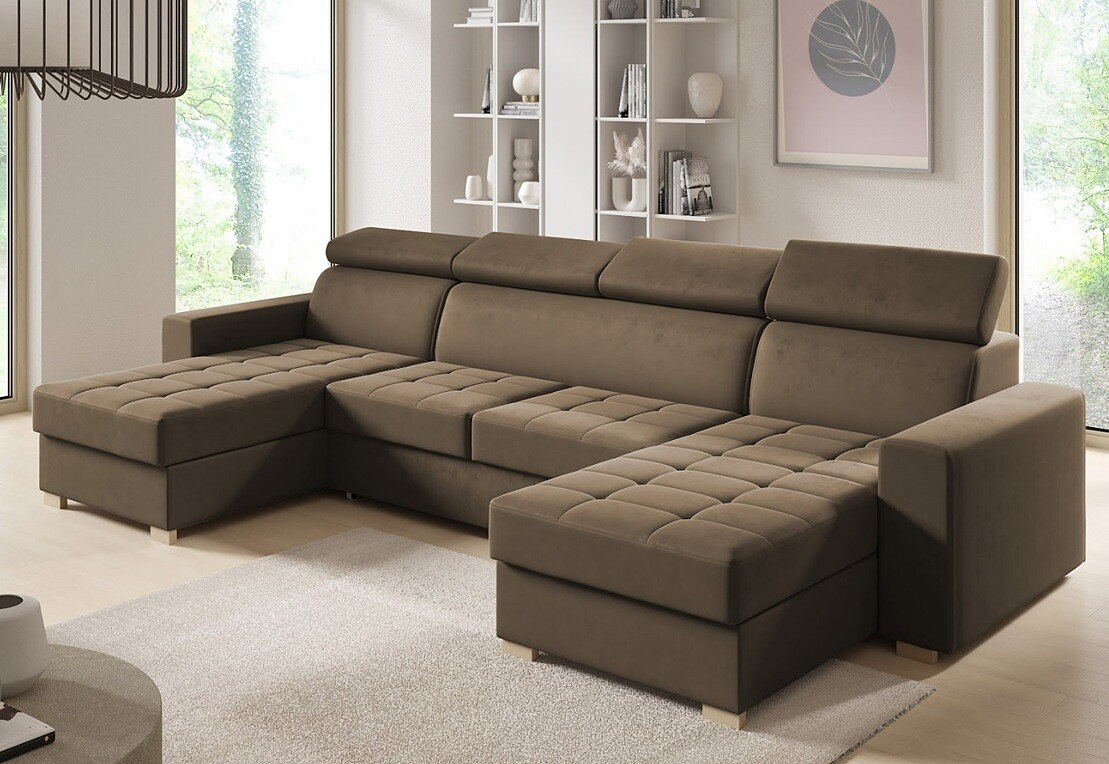 Objevte dokonalou kombinaci elegance, pohodlí a funkčnosti s rohovou sedací soupravou Monzun. Tato sedací souprava ve tvaru "U" je navržena tak, aby splnila všechny vaše potřeby a přinesla do vašeho domova styl a komfort.