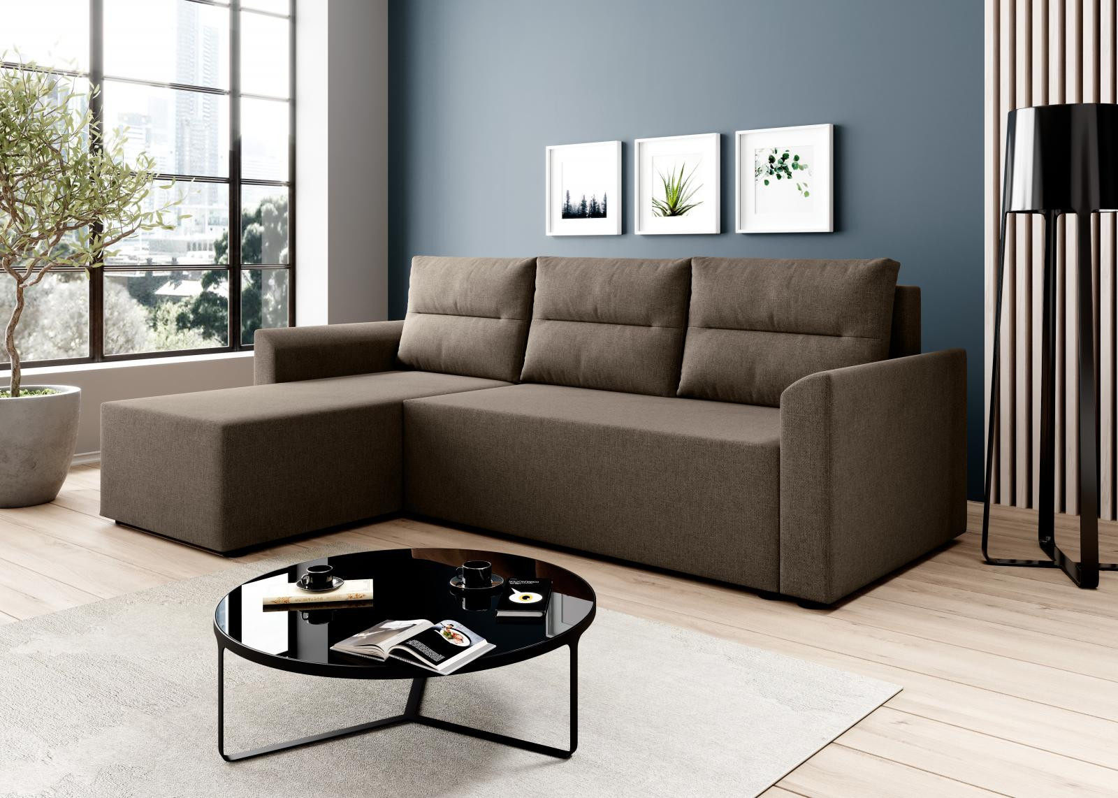 Sedací souprava Pikolo, je příjemným spojením elegance, funkčnosti a pohodlí. Sedací souprava je vyrobená v nadčasovém designu a hodí se do každého interiéru. Díky svým rozměrům je vhodná i do menších pokojů. Je velmi pohodlná a zároveň praktická. Velkou předností sedací soupravy, je univerzální použití. Tzn. že si ji můžete podle potřeby sestavit jako levou nebo pravou a jednoduše si ji podle potřeby přizpůsobíte. Praktickou stránku sedací soupravy zajišťuje možnost rozložení k občasnému přespání návštěvy a samozřejmostí je i úložný prostor na lůžkoviny. Sedací soupravu nabízíme v několika trendy odstínech. Vyobrazené doplňky a dekorace nejsou v ceně. Zobrazení barev na fotografii se může od skutečnosti lišit.