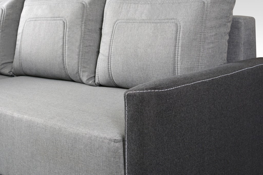 Moderní rohová sedací souprava Vás zaujme svým jednoduchým designem. Součástí jsou polštáře, které dělají sedací soupravu velice pohodlnou. Je praktická, rozklad lze použít k občasnému přespání, plocha lůžka je 137 x 203 cm. Uvnitř sedací soupravy je úložný prostor, který je možné využít k uložení lůžkovin. Výplň sedáku tvoří kvalitní středně tvrdá molitanová pěna a bonelová pružina. Zboží dodáno v demontu.