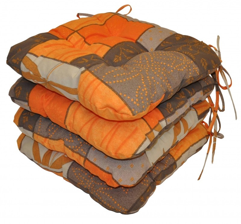 Set 4 kusů univerzálních sedáků plněných drceným molitanem. | Praktický sedák na židli plněný drceným molitanem. Díky tomu si sedák zachová svůj tvar i výšku po celou dobu používání. Sedák má čtvercový tvar se zaoblenými rohy. Velikost sedáku je 39x39 cm. Výška sedáku je přibližně 7 cm. Sedák je opatřen praktickými šňůrkami k přichycení k židli. Sedák můžete použít na běžné židle, plastový nábytek nebo zahradní nábytek. Šňůrky pro upevnění k židli jsou vyrobeny přímo z dané látky sedáku, čímž je zajištěna sladěnost šňůrek s celým sedákem a výsledný efekt je dokonalý. Délka šňůrek je 30 cm a ve dvou rozích je všito po dvou šňůrkách pro snadné přichycení sedáku k židli. Šňůrky jsou tak dostatečně dlouhé i pro případ, kdy je potřebujete uvázat až kolem opěradla ( zezadu za židlí). Další výhodou je, že naše sedáky jsou pratelné na 40 stupňů Celsia.