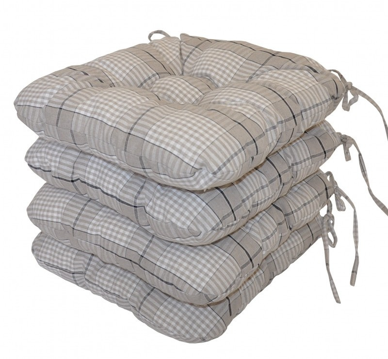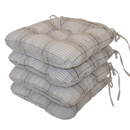 Set 4 kusů univerzálních sedáků plněných drceným molitanem. | Praktický sedák na židli plněný drceným molitanem. Díky tomu si sedák zachová svůj tvar i výšku po celou dobu používání. Sedák má čtvercový tvar se zaoblenými rohy. Velikost sedáku je 39x39 cm. Výška sedáku je přibližně 7 cm. Sedák je opatřen praktickými šňůrkami k přichycení k židli. Sedák můžete použít na běžné židle, plastový nábytek nebo zahradní nábytek. Šňůrky pro upevnění k židli jsou vyrobeny přímo z dané látky sedáku, čímž je zajištěna sladěnost šňůrek s celým sedákem a výsledný efekt je dokonalý. Délka šňůrek je 30 cm a ve dvou rozích je všito po dvou šňůrkách pro snadné přichycení sedáku k židli. Šňůrky jsou tak dostatečně dlouhé i pro případ, kdy je potřebujete uvázat až kolem opěradla ( zezadu za židlí). Další výhodou je, že naše sedáky jsou pratelné na 40 stupňů Celsia.