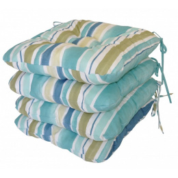 Set 4 kusů univerzálních sedáků plněných drceným molitanem. | Praktický sedák na židli plněný drceným molitanem. Díky tomu si sedák zachová svůj tvar i výšku po celou dobu používání. Sedák má čtvercový tvar se zaoblenými rohy. Velikost sedáku je 39x39 cm. Výška sedáku je přibližně 7 cm. Sedák je opatřen praktickými šňůrkami k přichycení k židli. Sedák můžete použít na běžné židle, plastový nábytek nebo zahradní nábytek. Šňůrky pro upevnění k židli jsou vyrobeny přímo z dané látky sedáku, čímž je zajištěna sladěnost šňůrek s celým sedákem a výsledný efekt je dokonalý. Délka šňůrek je 30 cm a ve dvou rozích je všito po dvou šňůrkách pro snadné přichycení sedáku k židli. Šňůrky jsou tak dostatečně dlouhé i pro případ, kdy je potřebujete uvázat až kolem opěradla ( zezadu za židlí). Další výhodou je, že naše sedáky jsou pratelné na 40 stupňů Celsia.