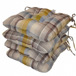 Set 4 kusů univerzálních sedáků plněných drceným molitanem. | Praktický sedák na židli plněný drceným molitanem. Díky tomu si sedák zachová svůj tvar i výšku po celou dobu používání. Sedák má čtvercový tvar se zaoblenými rohy. Velikost sedáku je 39x39 cm. Výška sedáku je přibližně 7 cm. Sedák je opatřen praktickými šňůrkami k přichycení k židli. Sedák můžete použít na běžné židle, plastový nábytek nebo zahradní nábytek. Šňůrky pro upevnění k židli jsou vyrobeny přímo z dané látky sedáku, čímž je zajištěna sladěnost šňůrek s celým sedákem a výsledný efekt je dokonalý. Délka šňůrek je 30 cm a ve dvou rozích je všito po dvou šňůrkách pro snadné přichycení sedáku k židli. Šňůrky jsou tak dostatečně dlouhé i pro případ, kdy je potřebujete uvázat až kolem opěradla ( zezadu za židlí). Další výhodou je, že naše sedáky jsou pratelné na 40 stupňů Celsia.