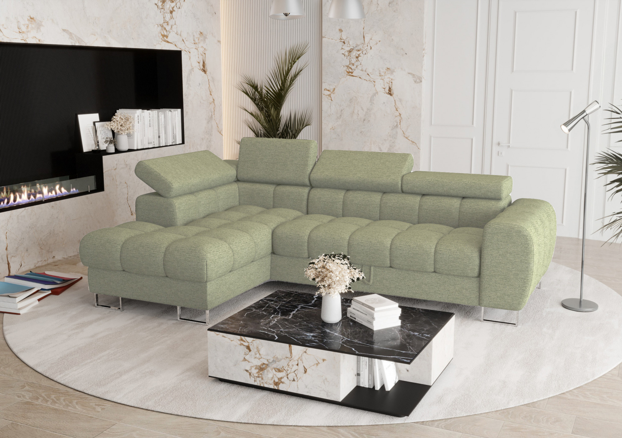 Sestava Rohová sedací souprava ASPEN MINI 260x170 cm + Taburet 70 x 70 mátová WID31 - Rychlé doručení