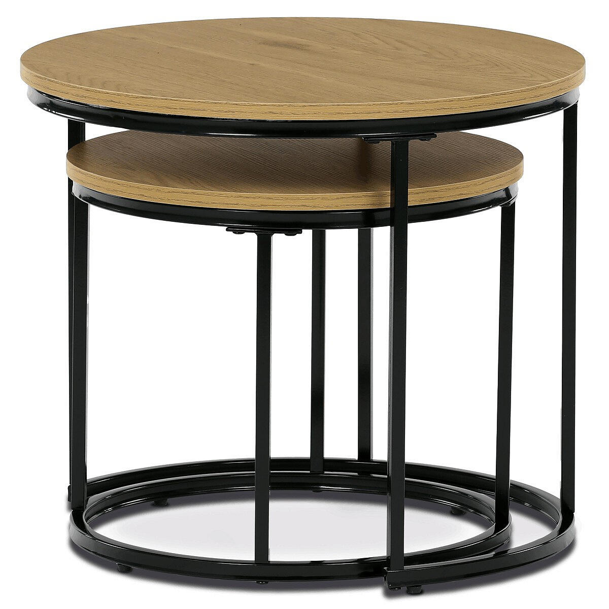 Sada dvou odkládacích stolků značky Autronic spojuje moderní design a funkčnost. Kulaté desky v přírodním dekoru skvěle kontrastují s černými kovovými nohami, což vytváří elegantní industriální vzhled. Stoly lze snadno zasunout pod sebe, což šetří prostor a zvyšuje jejich praktické využití. Jsou ideální do obývacího pokoje k odložení nápojů, knih nebo dekorací. Díky pečlivému zpracování a kvalitním materiálům je tato sada stylovým a odolným doplňkem každého interiéru. Menší stolek je o průměru 43cm a výšce 37cm.