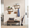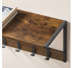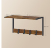 Sada dvou nástěnných polic v dekoru Old wood kombinuje pevné MDF desky s nosnými kovovými vzpěrami v černé barvě, které zajišťují stabilitu a dlouhou životnost. Police nabízejí praktický odkládací prostor o rozměrech 50x24x27 cm, přičemž jedna z nich je doplněna o pět kovových háčků pro zavěšení drobných předmětů. Povrch desek v hnědém odstínu s výraznou strukturou dřeva přináší do interiéru přírodní vzhled a zároveň snadnou údržbu. Kovové prvky jsou opatřeny matným černým povrchem, který odolává běžnému opotřebení. Díky kombinaci materiálů a funkčnímu designu jsou police vhodné do různých prostor, kde poslouží jak k dekoraci, tak k praktickému uspořádání věcí.