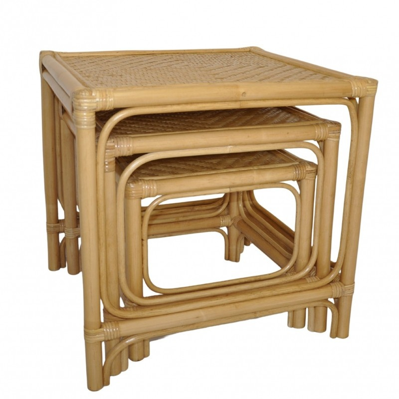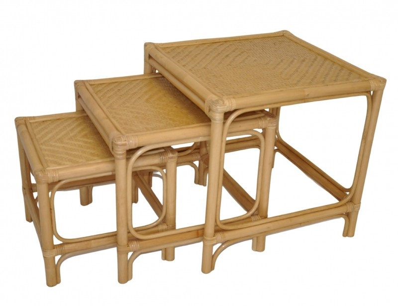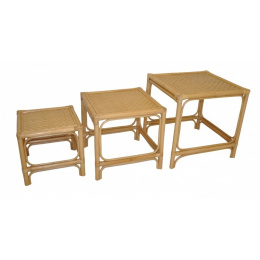 Set 3 kusů stolků stoleků vyrobených z přírodního ratanu. | Barva ratanové konstrukce i ratanového výpletu je medová. Velikost stolků je 56x56x56 cm, 48x48x47 cm a 40x40x38 cm. Stolky jsou skladné zasunutím pod sebe, čímž se ušetří místo, pokud je zrovna nepotřebujete.