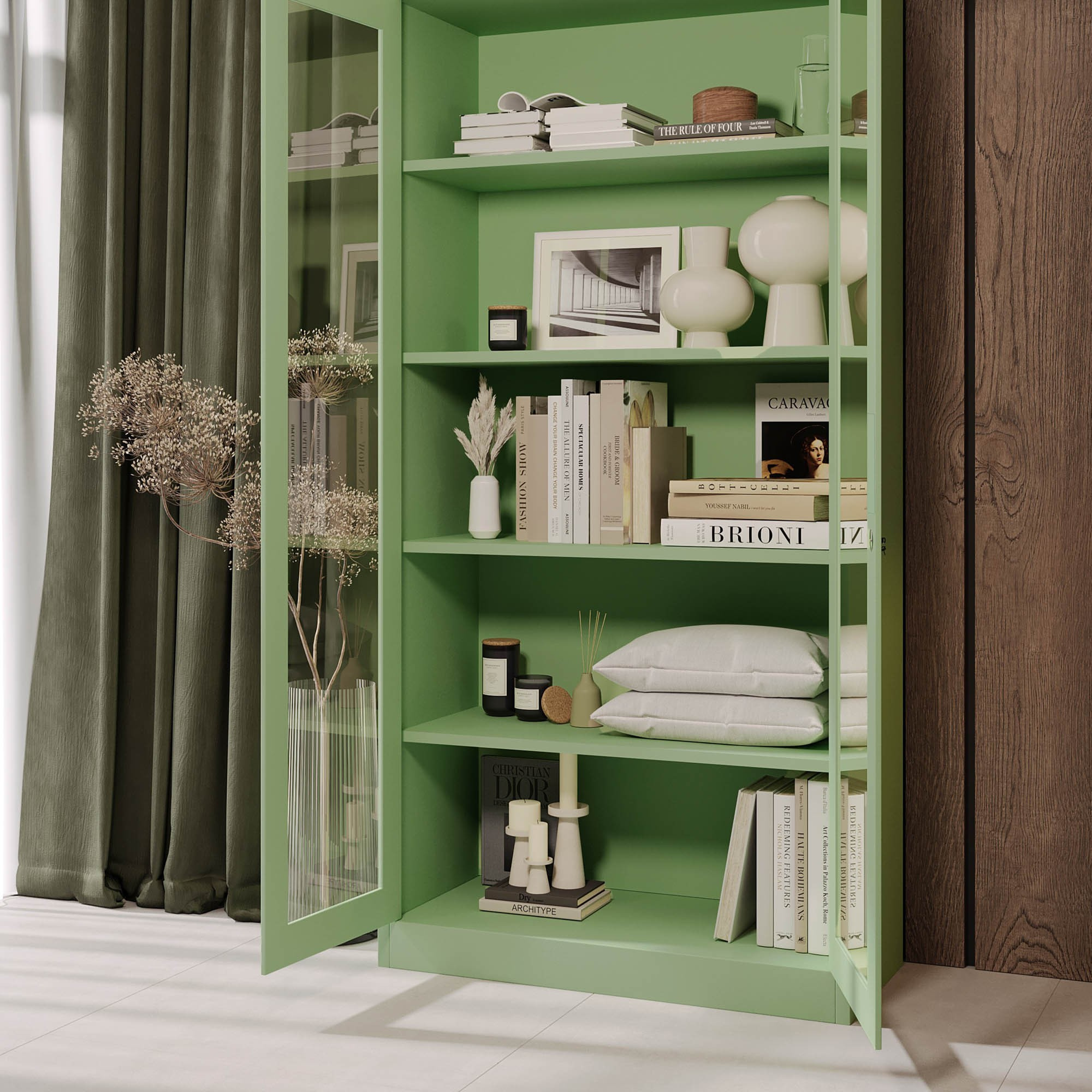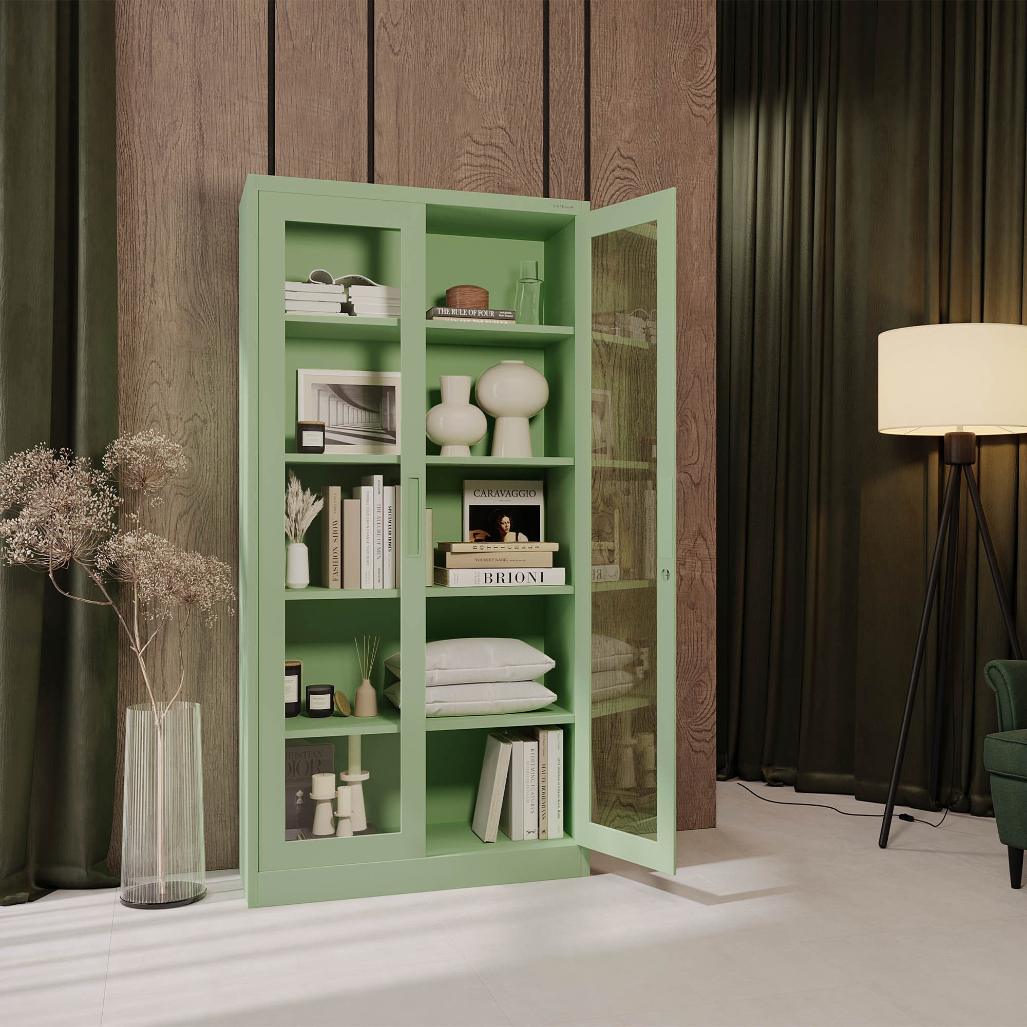 Skleněná vitrína AMELIA, 900 x 1850 x 400 mm, Fresh Style: pastelově zelená