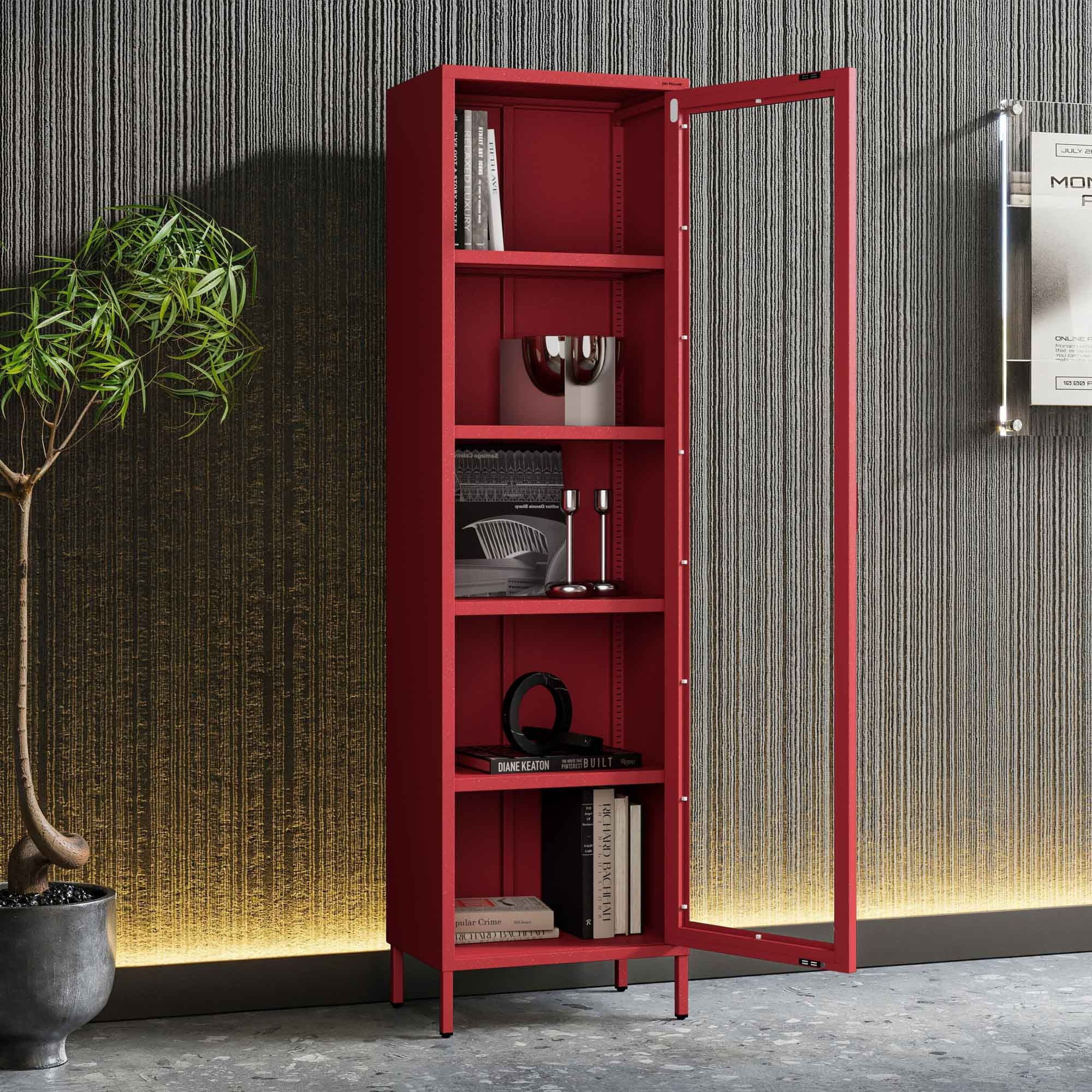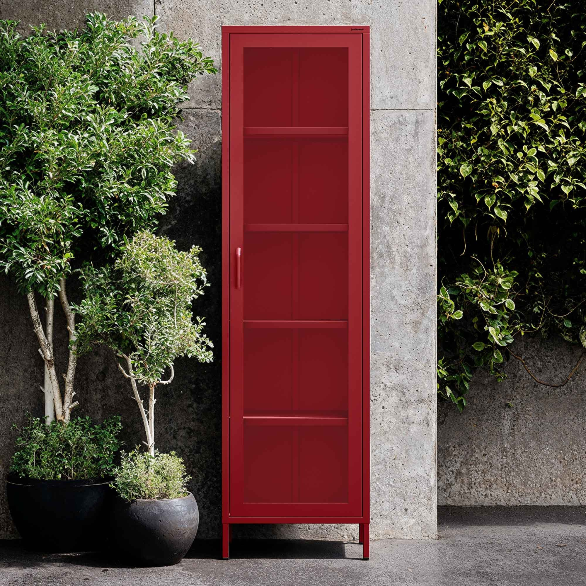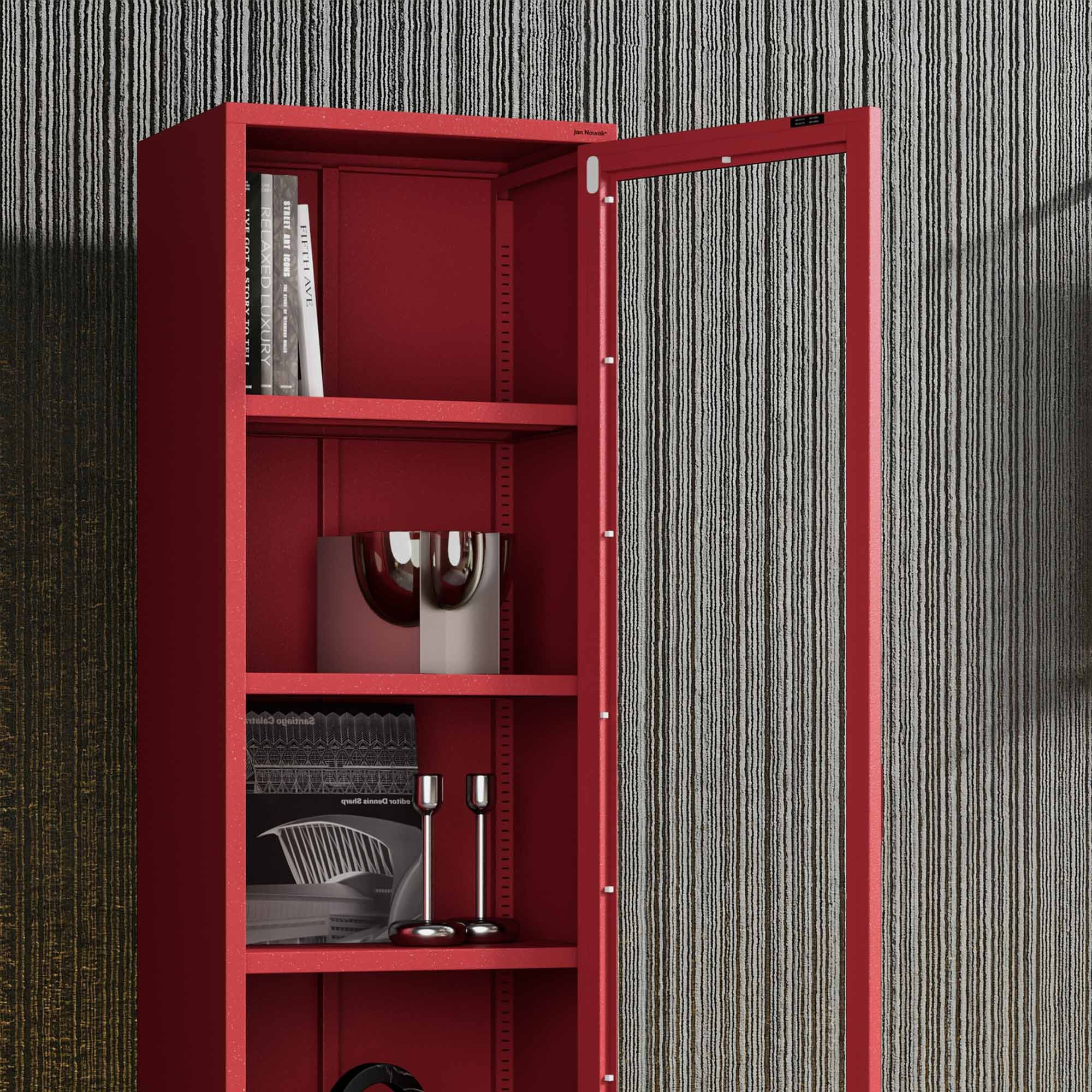 Skleněná vitrína do obývacího pokoje úzká červená Modern LUIGI 500 x 1800 x 350 mm