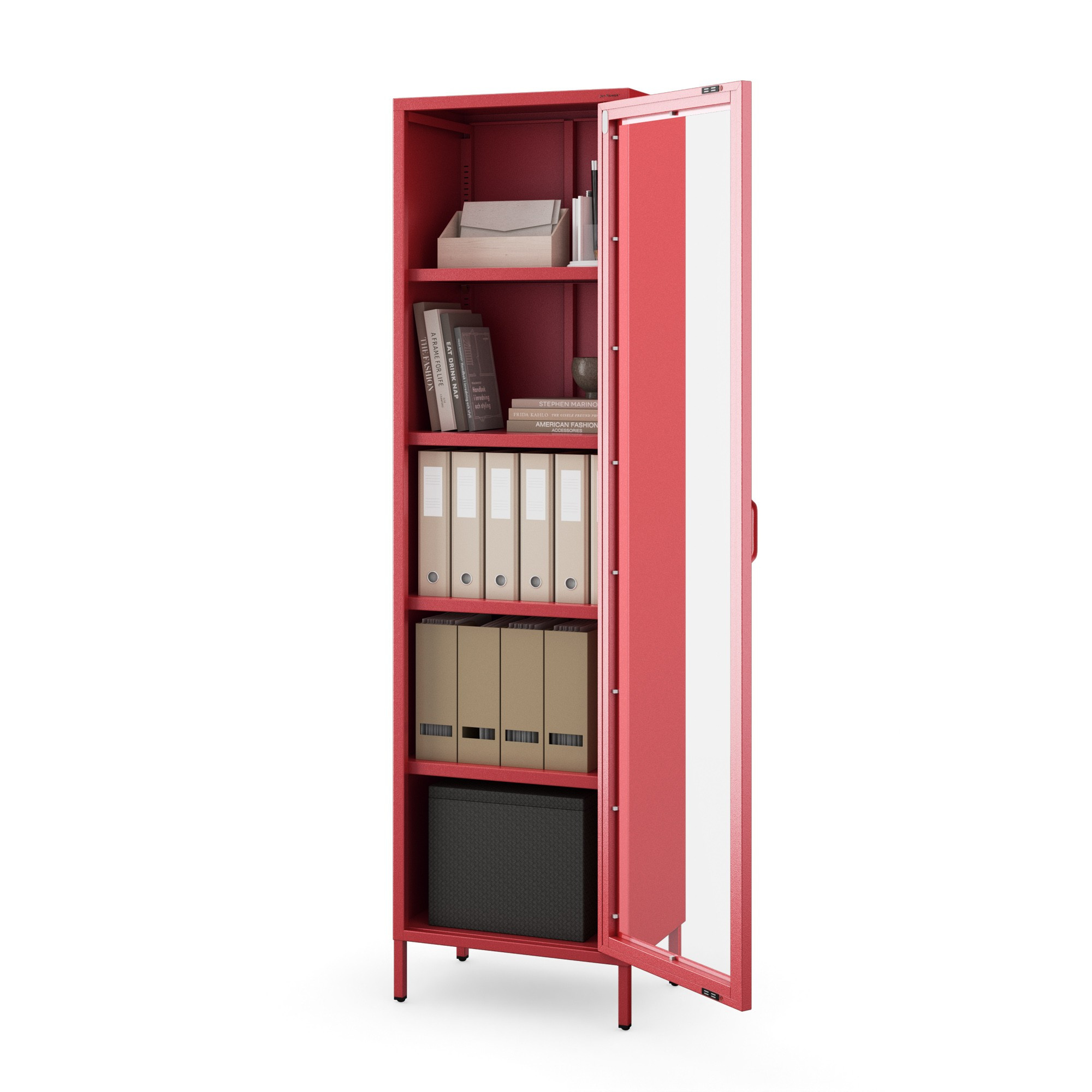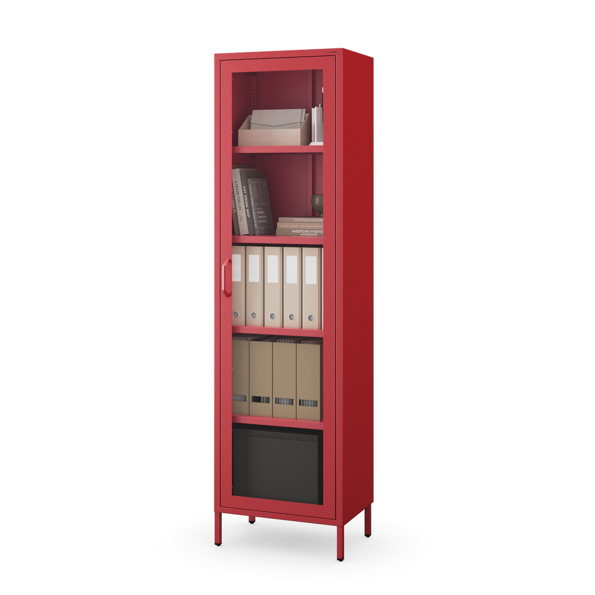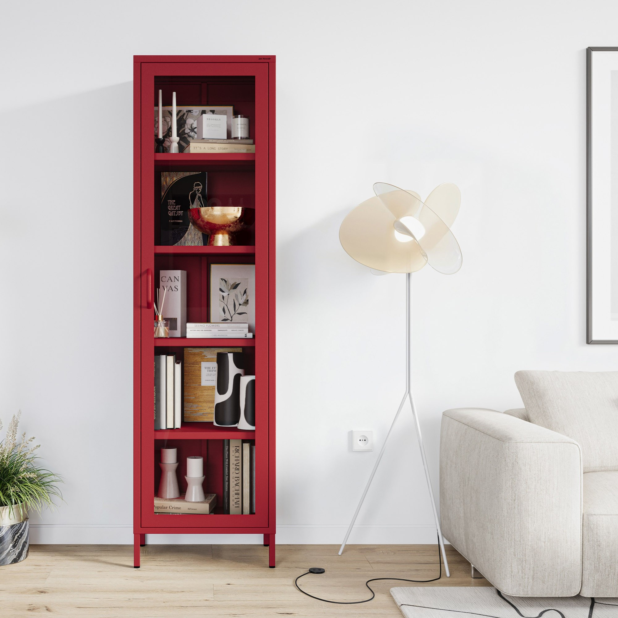 Skleněná vitrína do obývacího pokoje úzká červená Modern LUIGI 500 x 1800 x 350 mm