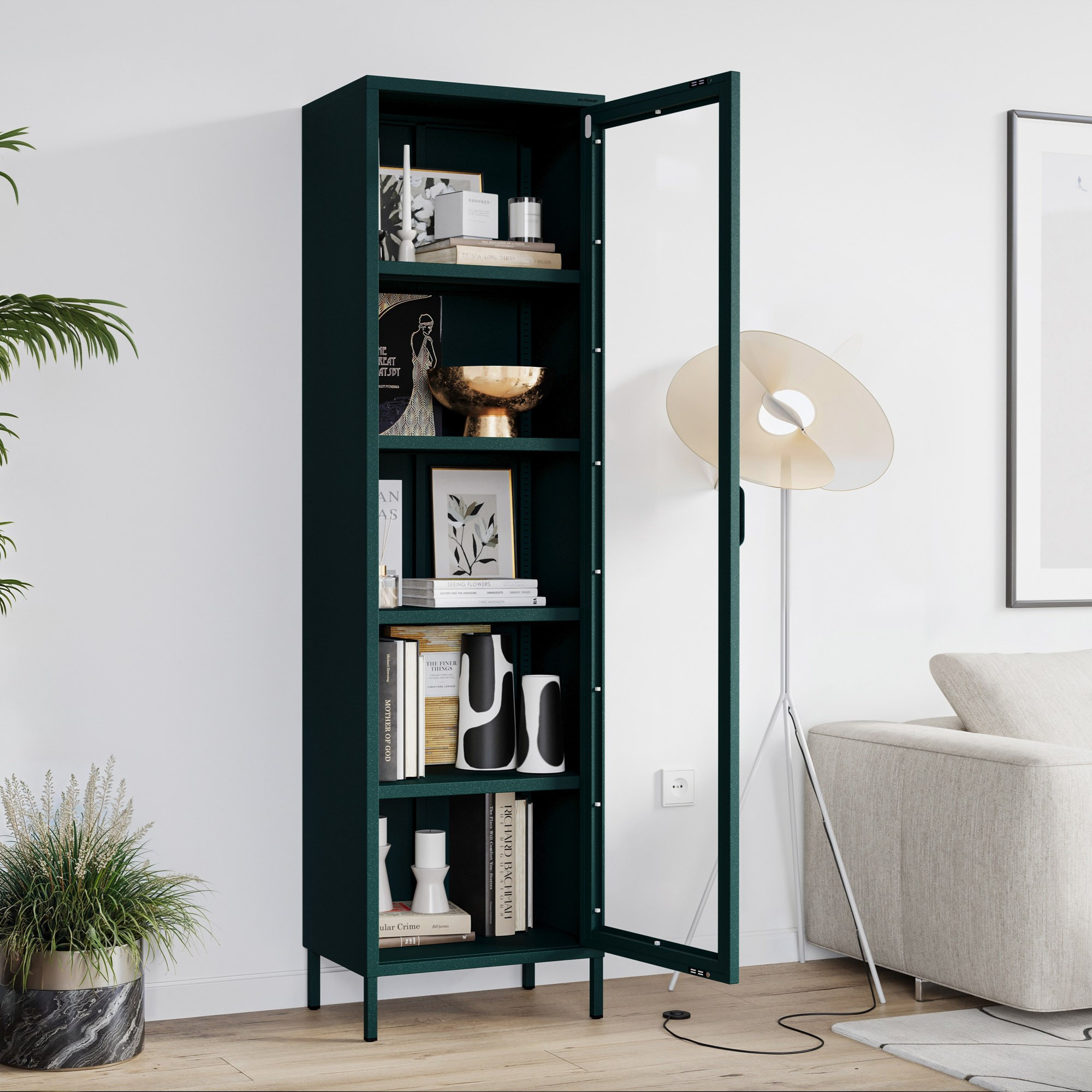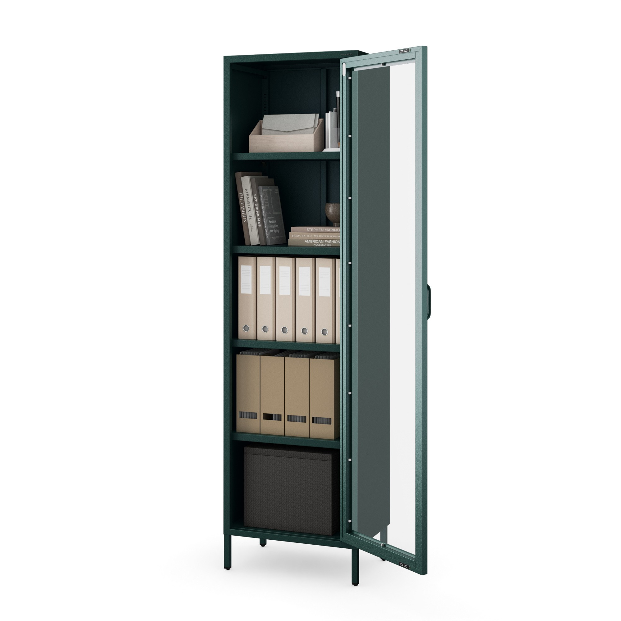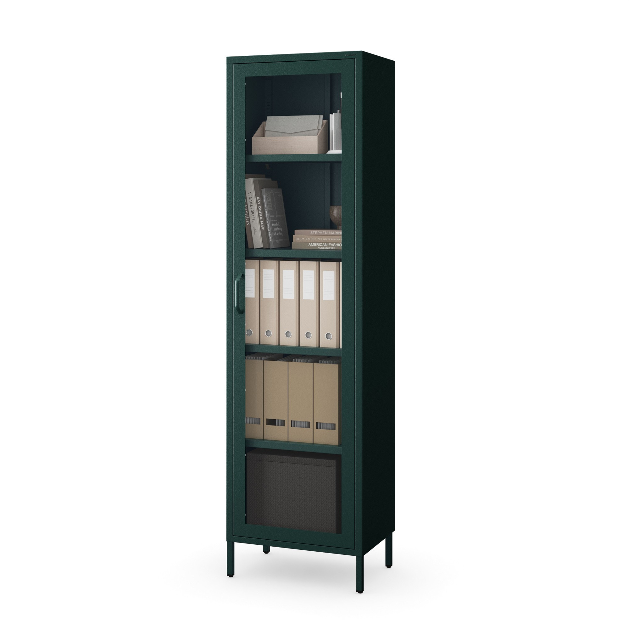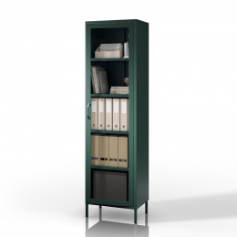 Prosklená vitrína úzká lahvově zelená Moderní LUIGI 500 x 1800 x 350 mm
