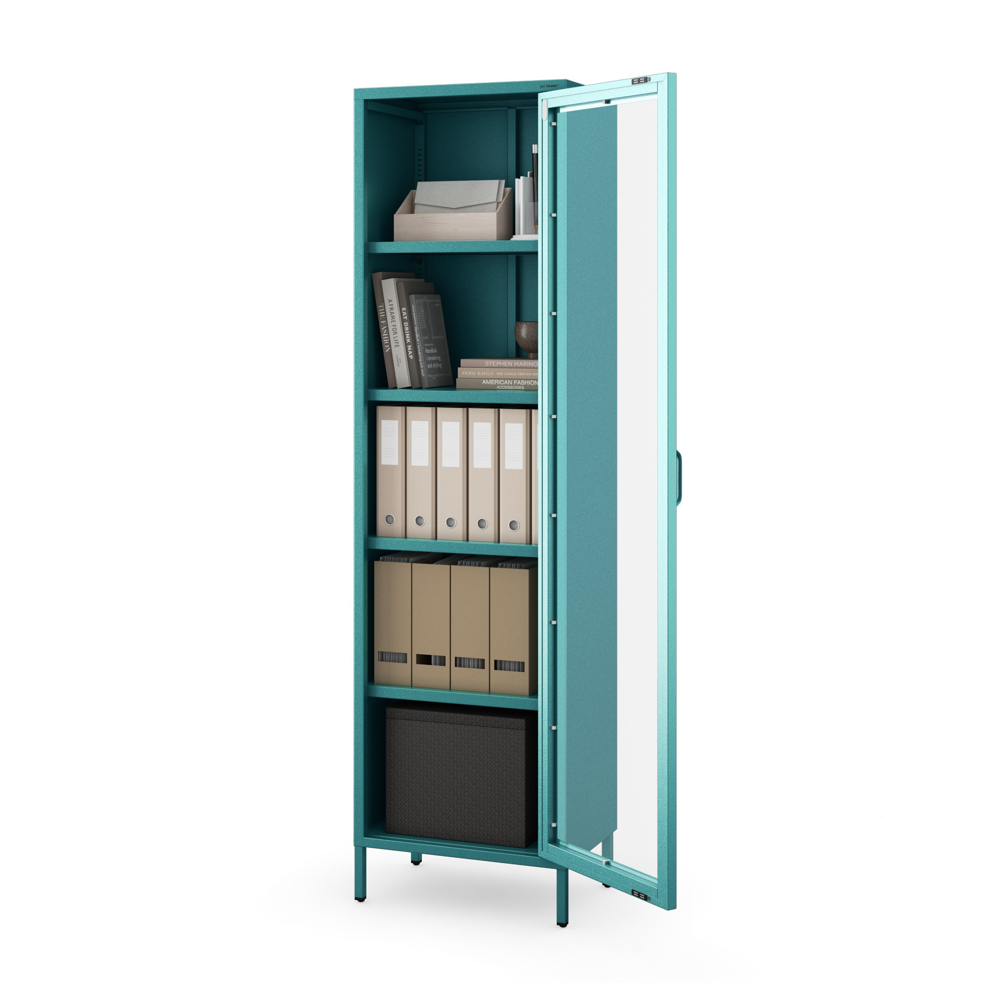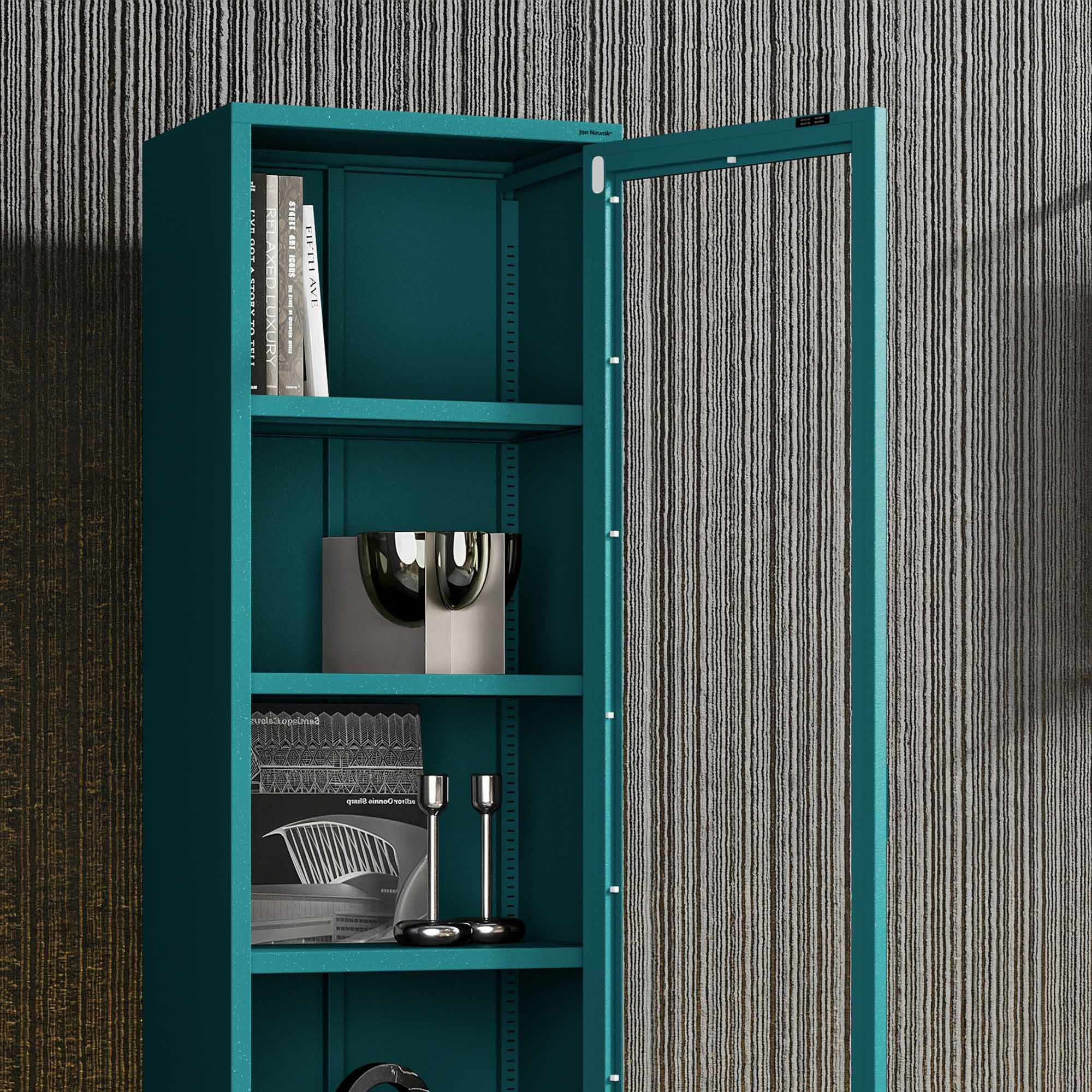 Prosklená vitrína úzká mořská / tyrkysová Moderní LUIGI 500 x 1800 x 350 mm