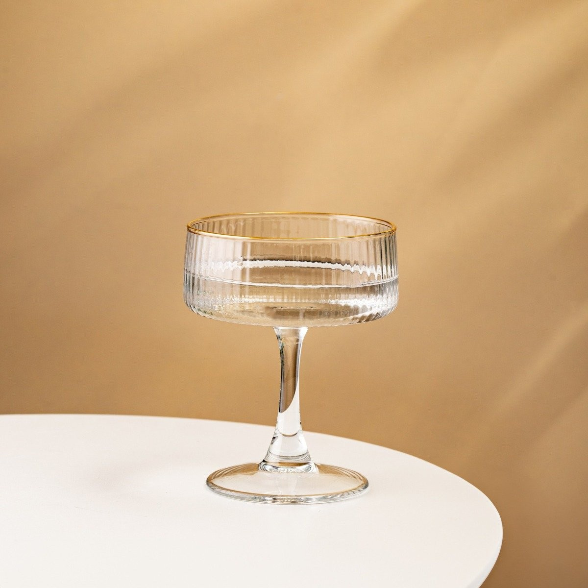 Sklenice LYNN je elegance v nejčistší formě. Jeho jemný zlatý okraj a rýhovaná struktura z něj činí ideální volbu pro výjimečné příležitosti.