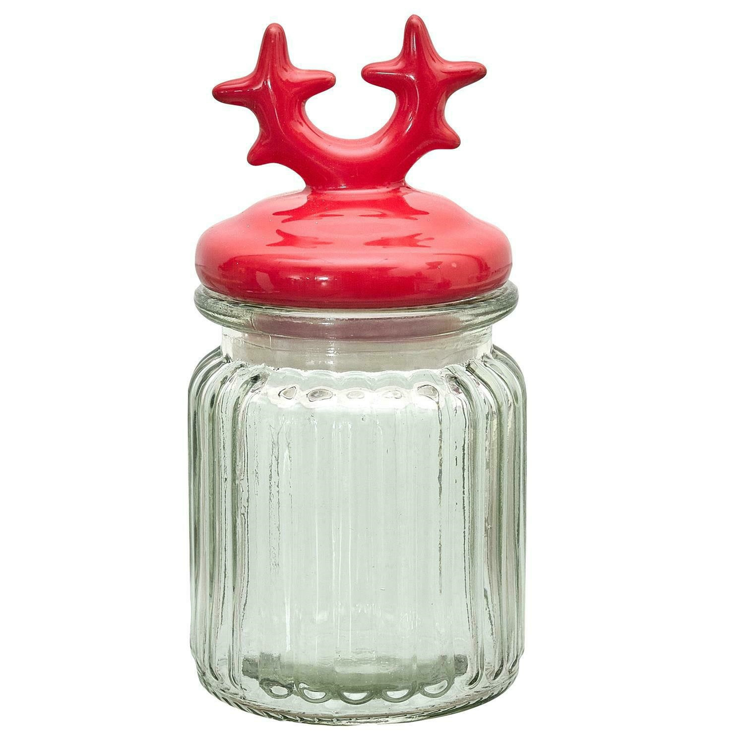 Skleněná nádoba s víkem ve tvaru sobích rohů je ideálním doplňkem zdobícím náš domov během Vánoc. Sklenice se osvědčí při skladování cukru, kávy nebo ořechů. Sklenice vyrobená ze skla, zatímco víčko je vyrobeno z keramiky. Sklenice je vybavena silikonovým těsněním. Objem 125 ml