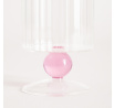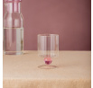 Sklenice FINOM je jedinečnou kombinací jednoduchosti a jemného barevného akcentu. Štíhlý, rýhovaný tvar skla byl zkombinován s ozdobnou růžovou kuličkou u základny, což celku dodává jedinečný charakter.