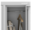 - Praktické vnitřní uspořádání: Každá přihrádka obsahuje tyč na zavěšení oblečení a polici pro uložení obuvi nebo doplňků.