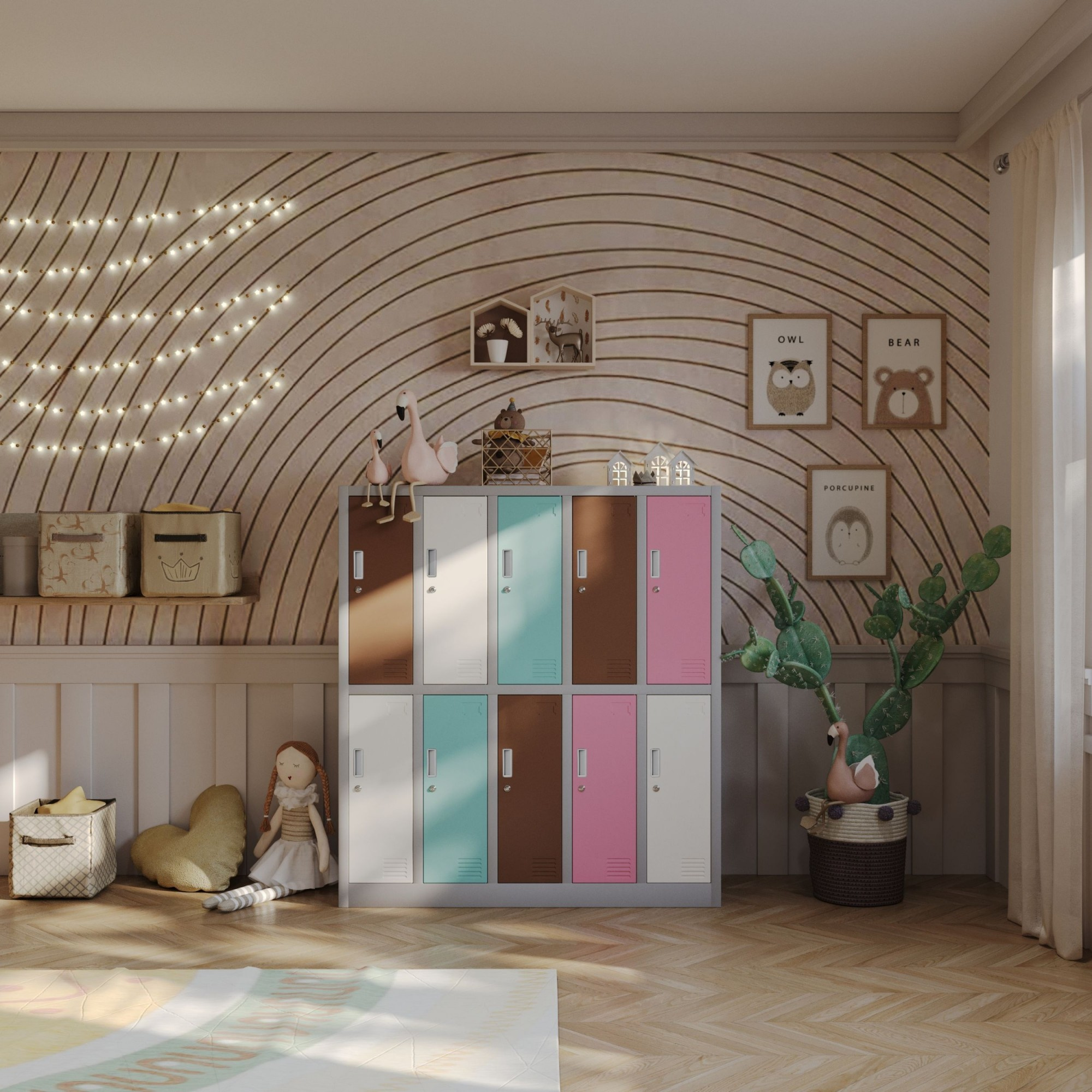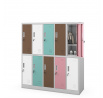 Školní skříňka BHP šedo-pastelová: 10-komorová , 1360 x 1500 x 450 mm