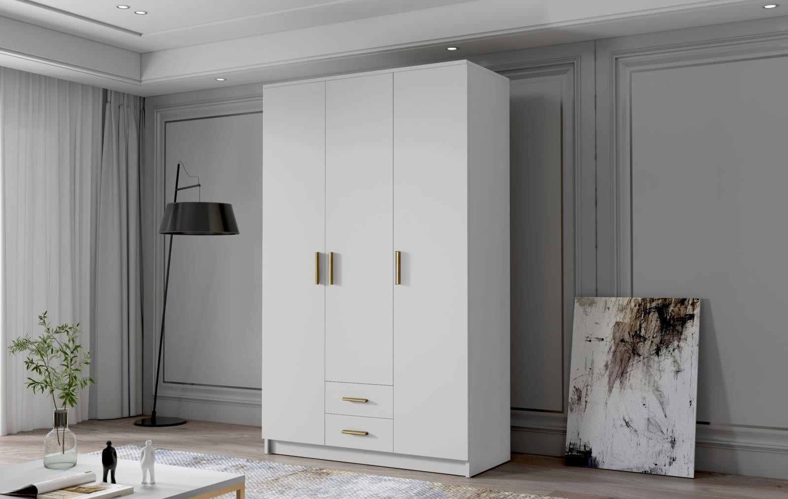 Skříň Arya I 120 - bílá/zlaté úchytky