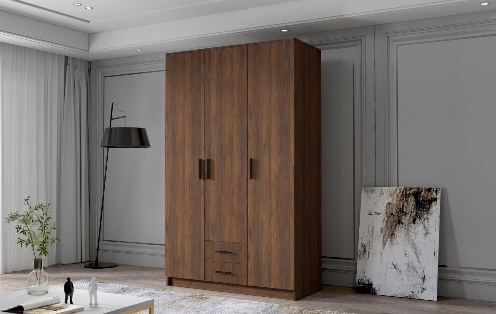 Skříň Arya I 120 - ořech/černé úchytky