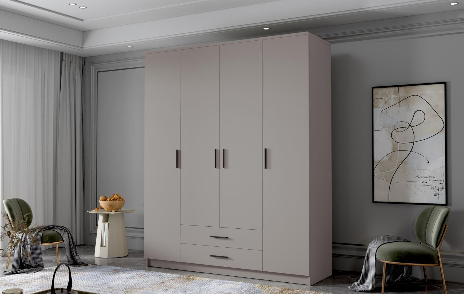 Skříň Arya I 160 - kašmír/černé úchytky