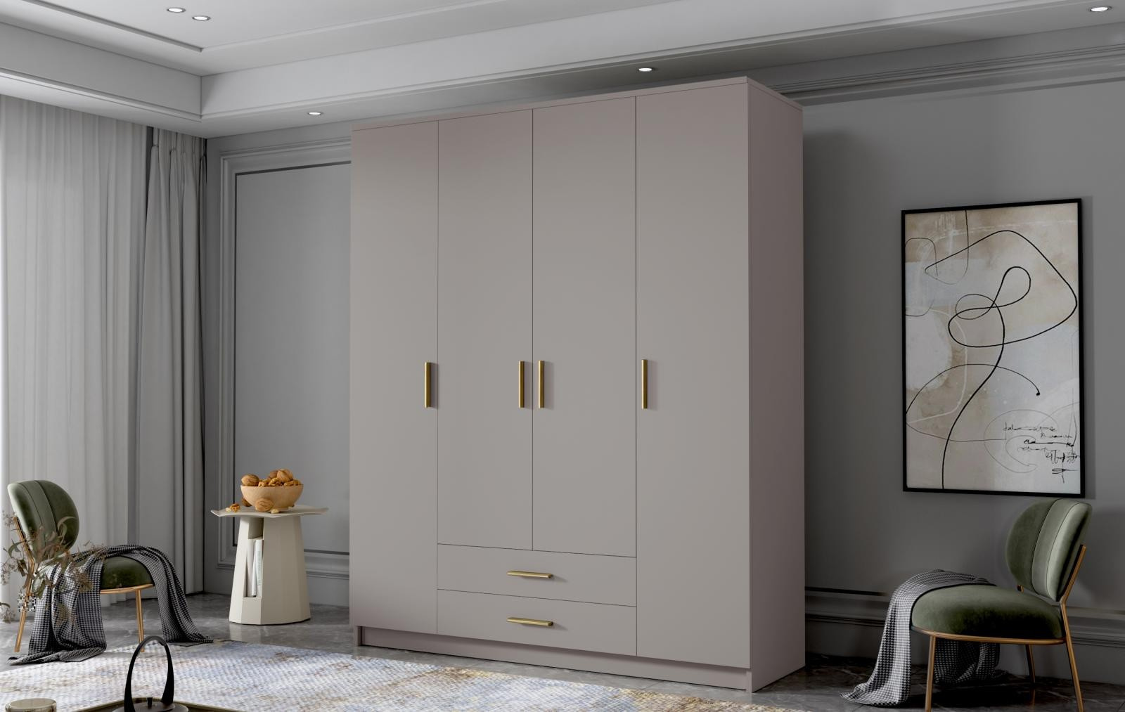 Skříň Arya I 160 - kašmír/zlaté úchytky