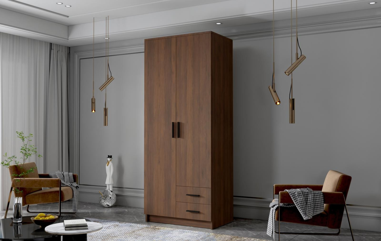 Šatní skříň Arya I v moderním designu má šířku 80 cm a je rozdělena na dvě praktické části. Vnitřní uspořádání kombinuje závěsnou tyč, čtyři police a 2 šuplíky, což umožňuje přehledné a praktické rozdělení šatníku.