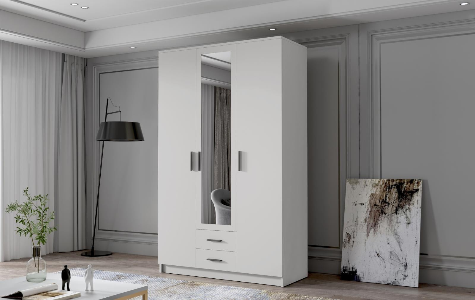 Skříň Arya II 120 - bílá/černé úchytky