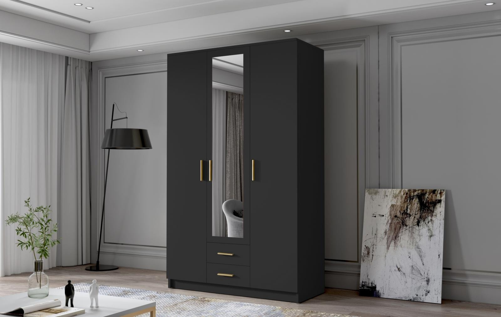 Skříň Arya II 120 - černá/zlaté úchytky