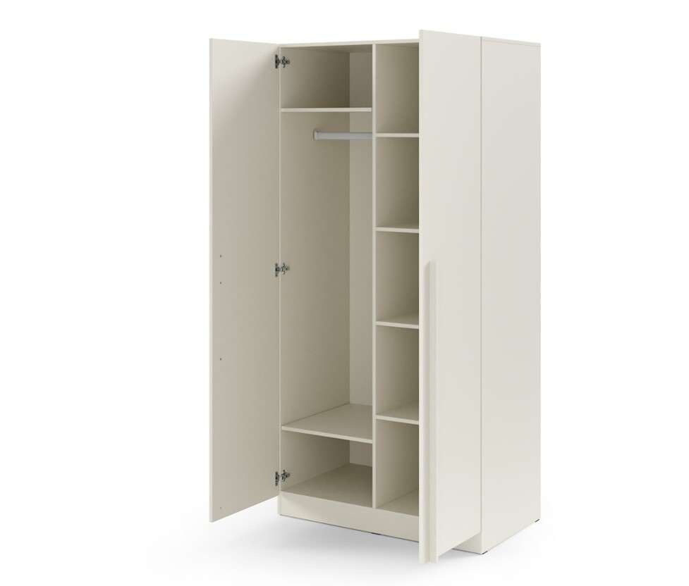 Tato 2-dveřová skříň nabízí klasické otvírání, které je nejen praktické, ale také přidává na eleganci celkového designu. Absence zrcadla na dveřích zajišťuje čistý a minimalistický vzhled, který se snadno integruje do jakéhokoli stylu interiéru.