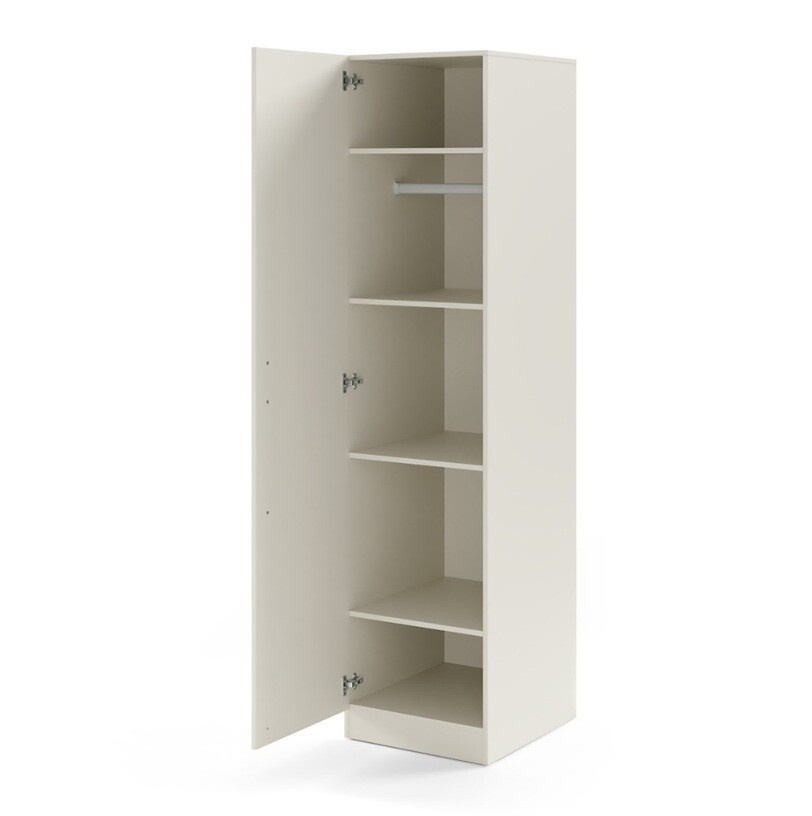 Tato 1-dveřová skříň je skvělou volbou pro ty, kteří hledají jednoduché a elegantní řešení pro ukládání oblečení, ložního prádla nebo jiných osobních věcí. Její minimalistický design a kvalitní zpracování z ní činí nadčasový kousek, který se hodí do každého interiéru.