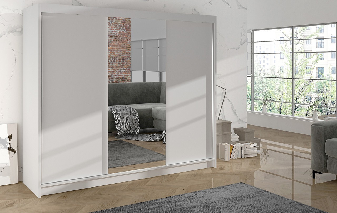 Korpus i dveře jsou vyrobeny z odolné 16 mm laminované desky s ABS hranami, které zajišťují dlouhou životnost. Posuvné dveře se hladce pohybují po hliníkových vodicích lištách. Skříň je dostupná v několika atraktivních barevných provedeních, takže ji snadno sladíte s ostatním nábytkem.