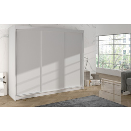 Korpus i dveře jsou vyrobeny z odolné 16 mm laminované desky s ABS hranami, které zajišťují dlouhou životnost. Posuvné dveře se hladce pohybují po hliníkových vodicích lištách. Skříň je dostupná v několika atraktivních barevných provedeních, takže ji snadno sladíte s ostatním nábytkem.