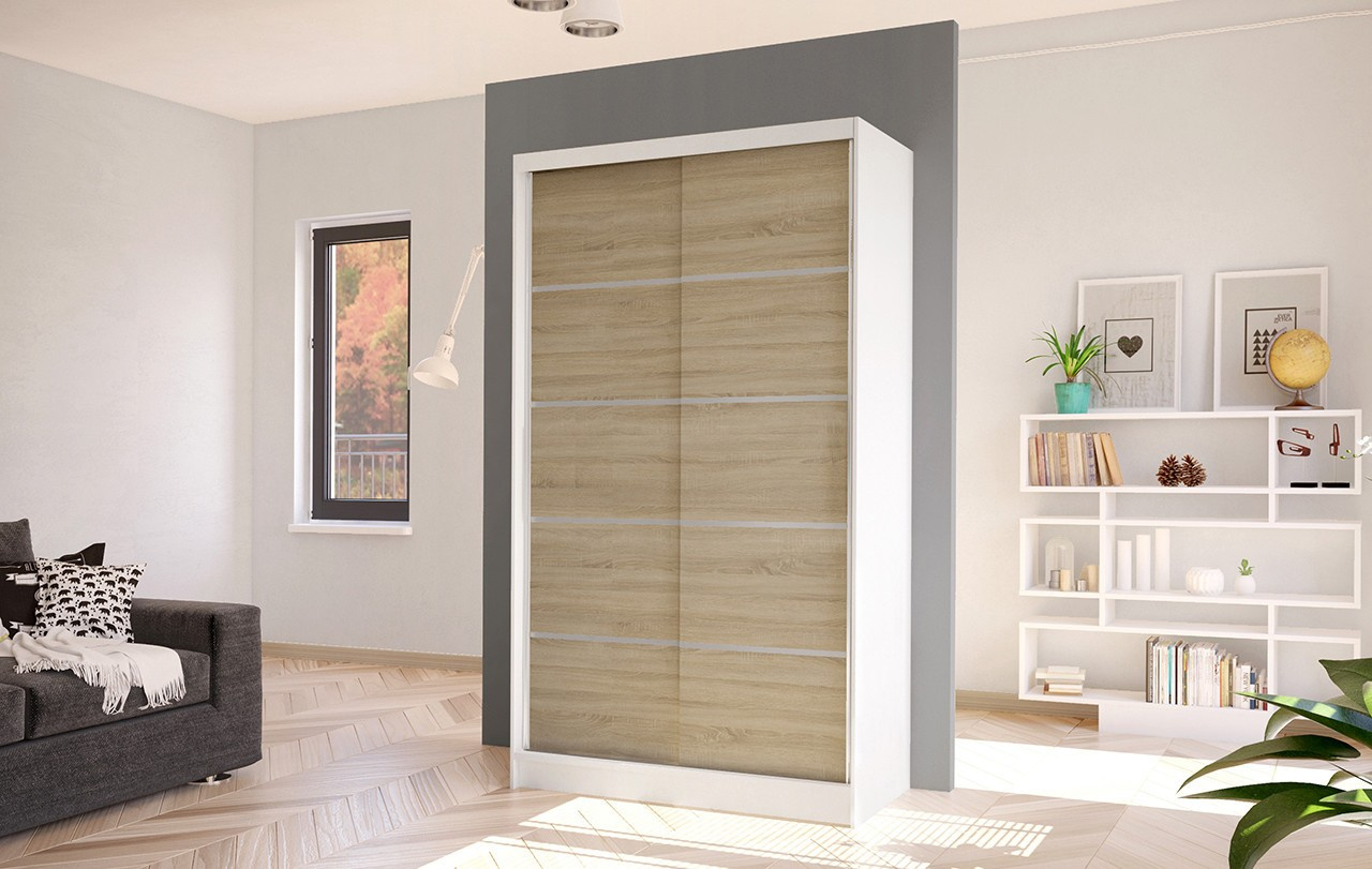 Korpus i dveře jsou vyrobeny z odolné 16 mm laminované desky s ABS hranami, které zajišťují dlouhou životnost. Posuvné dveře se hladce pohybují po hliníkových vodicích lištách. Skříň je dostupná v několika atraktivních barevných provedeních, takže ji snadno sladíte s ostatním nábytkem.