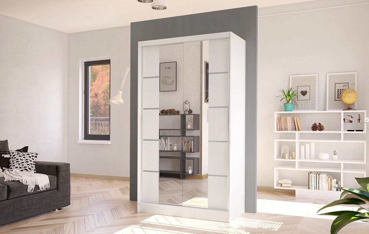 Korpus i dveře jsou vyrobeny z odolné 16 mm laminované desky s ABS hranami, které zajišťují dlouhou životnost. Posuvné dveře se hladce pohybují po hliníkových vodicích lištách. Skříň je dostupná v několika atraktivních barevných provedeních, takže ji snadno sladíte s ostatním nábytkem.