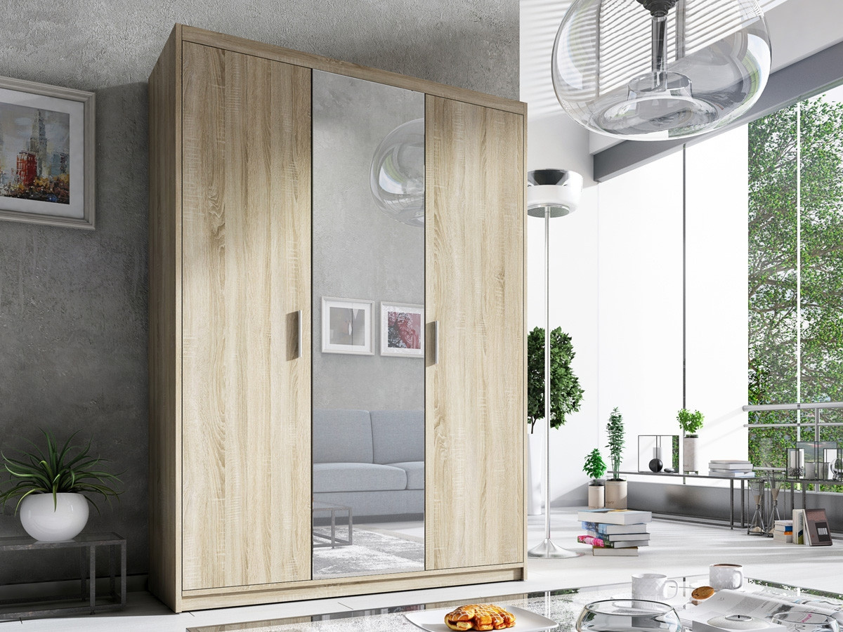 Šatní skříň Elena 3D se zrcadlem, dub sonoma