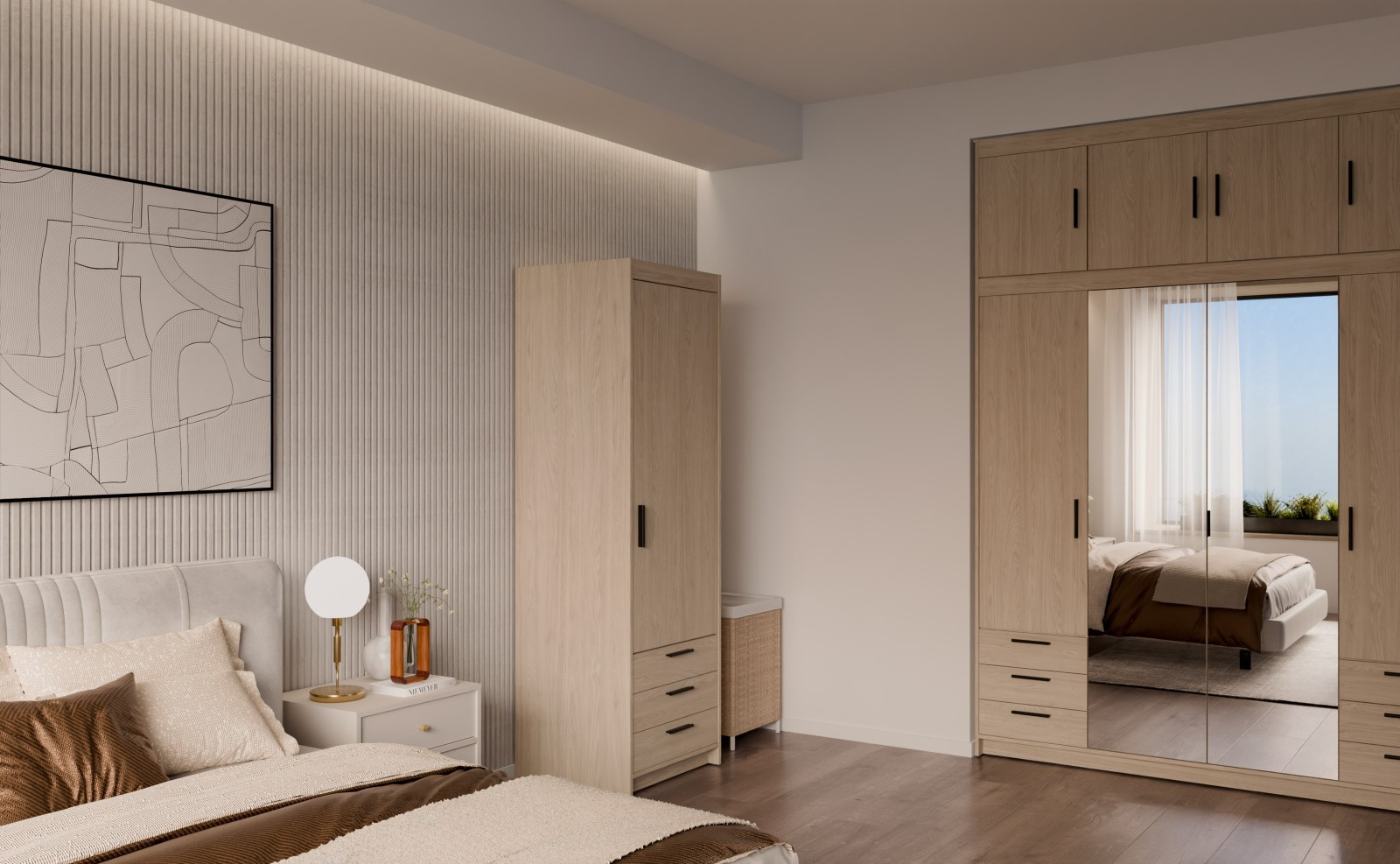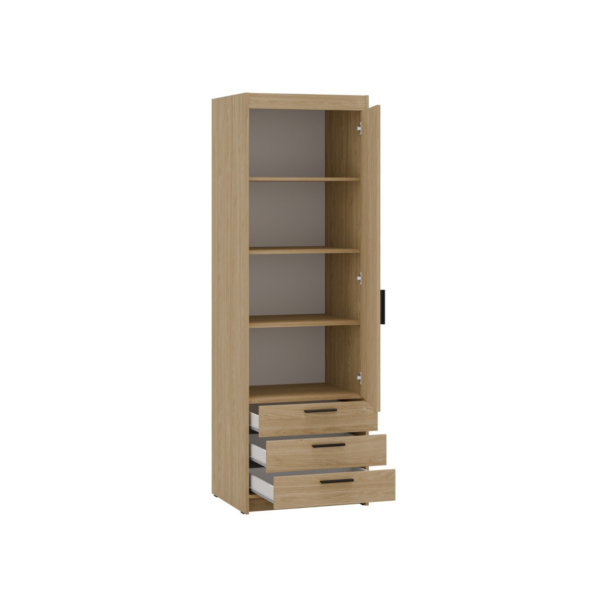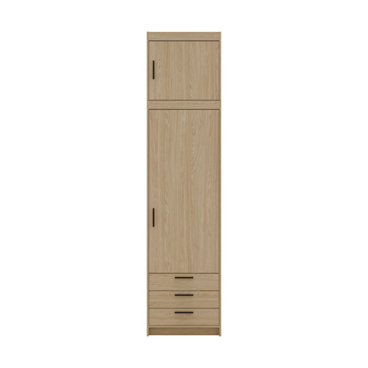Šatní skříň Enja je vyrobena z kvalitního lamina tl.15 mm, které je odolné a snadné na údržbu. Vnitřní uspořádání skříně je praktické a poskytuje dostatek úložného prostoru. Své uplatnění najde v ložnici, předsíni i v dětském pokoji. Ke skříni lze dokoupit nádstavec. Skříň je dodávaná v demontu a nabízíme ji ve několika barevných provedeních. Součástí balení je montážní plánek včetně všech potřebných spojovacích materiálů.