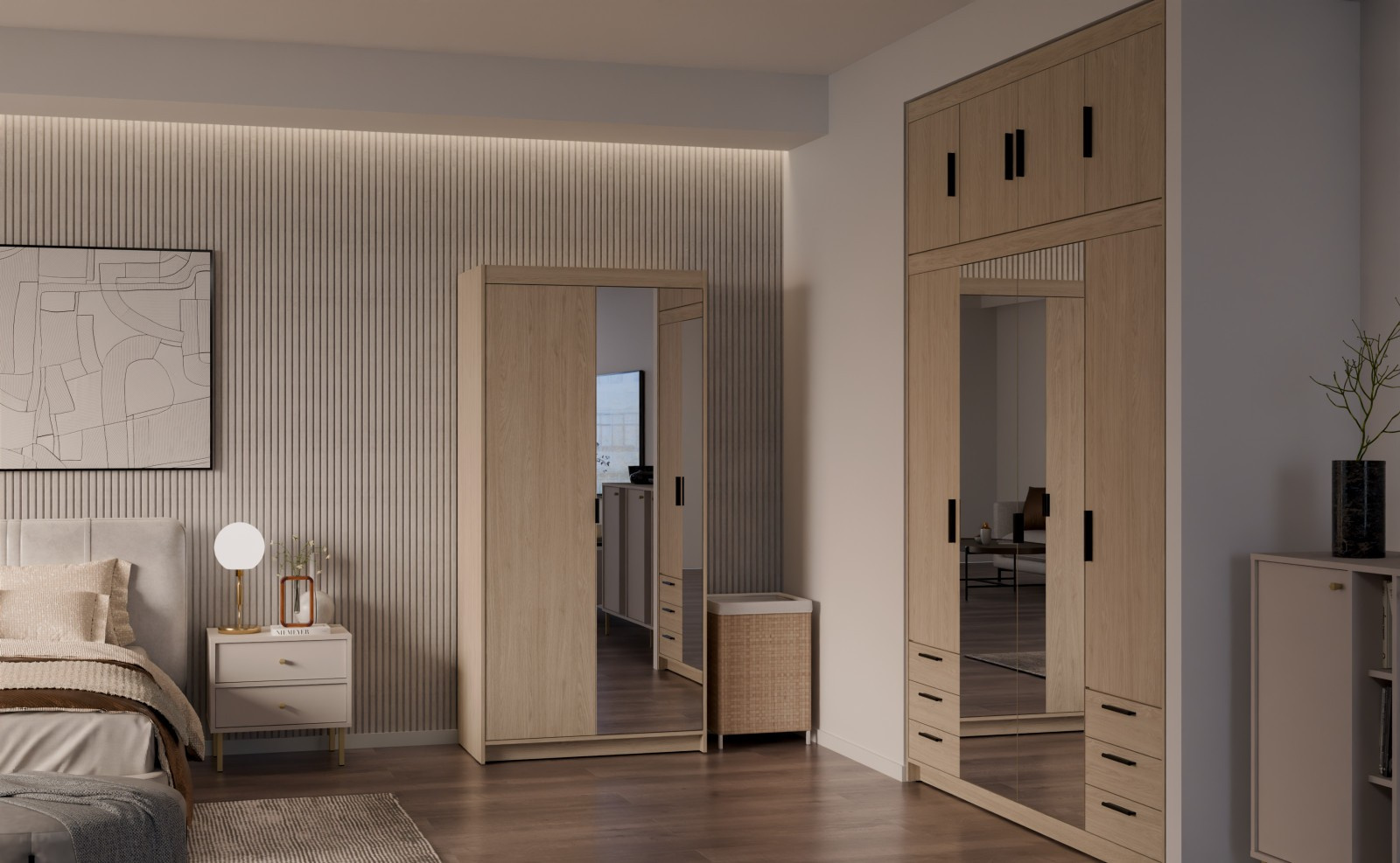 Šatní skříň Enja je vyrobena z kvalitního lamina tl.15 mm, které je odolné a snadné na údržbu. Vnitřní uspořádání skříně je praktické a poskytuje dostatek úložného prostoru. Své uplatnění najde v ložnici, předsíni i v dětském pokoji. Ke skříni lze dokoupit nádstavec. Skříň je dodávaná v demontu a nabízíme ji ve několika barevných provedeních. Součástí balení je montážní plánek včetně všech potřebných spojovacích materiálů.