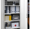 - Kompaktní rozměry: Ideální pro prostory s omezeným místem. Díky svým rozměrům (výška 1750 mm, hloubka 400 mm) se vejde i do úzkých chodeb nebo malých kanceláří.