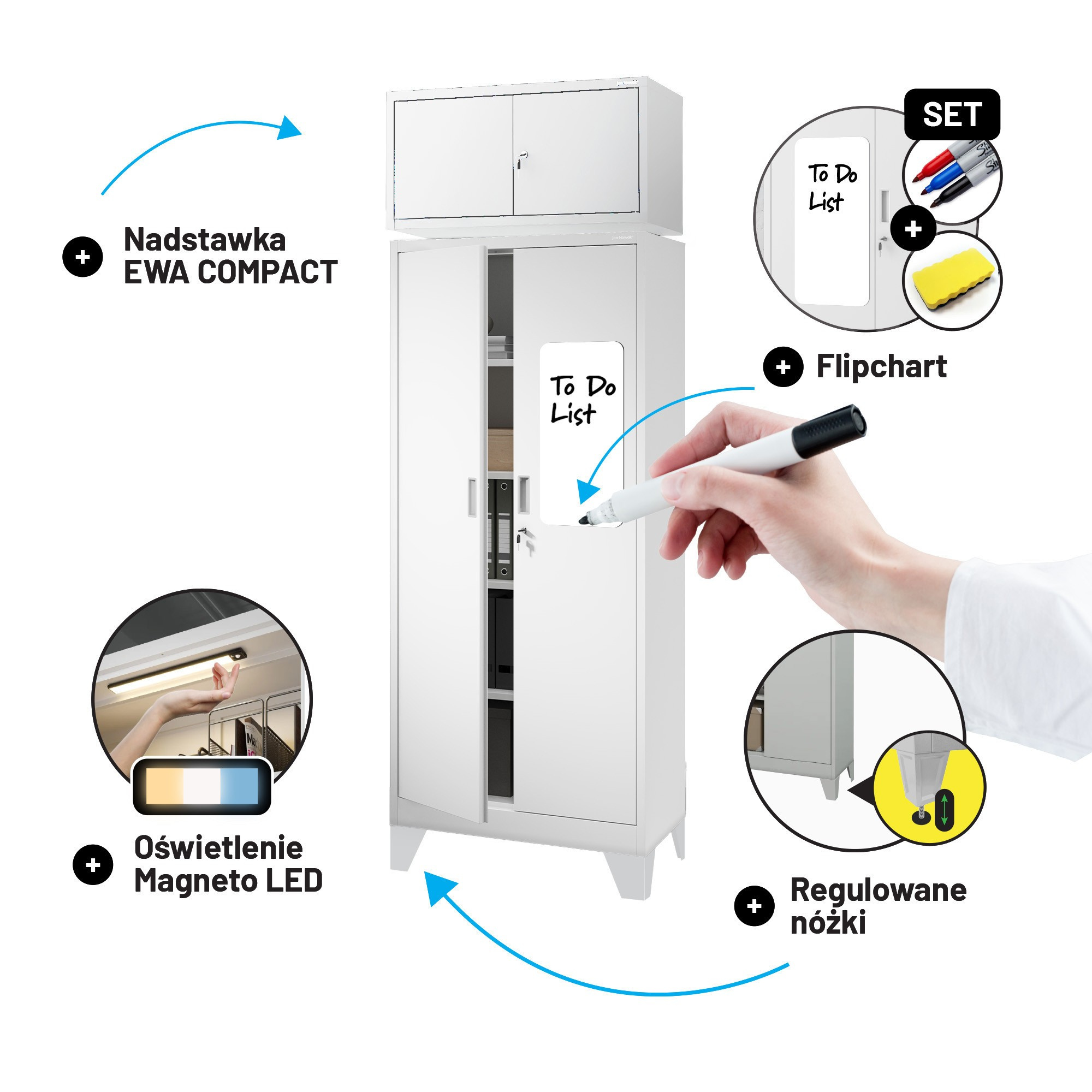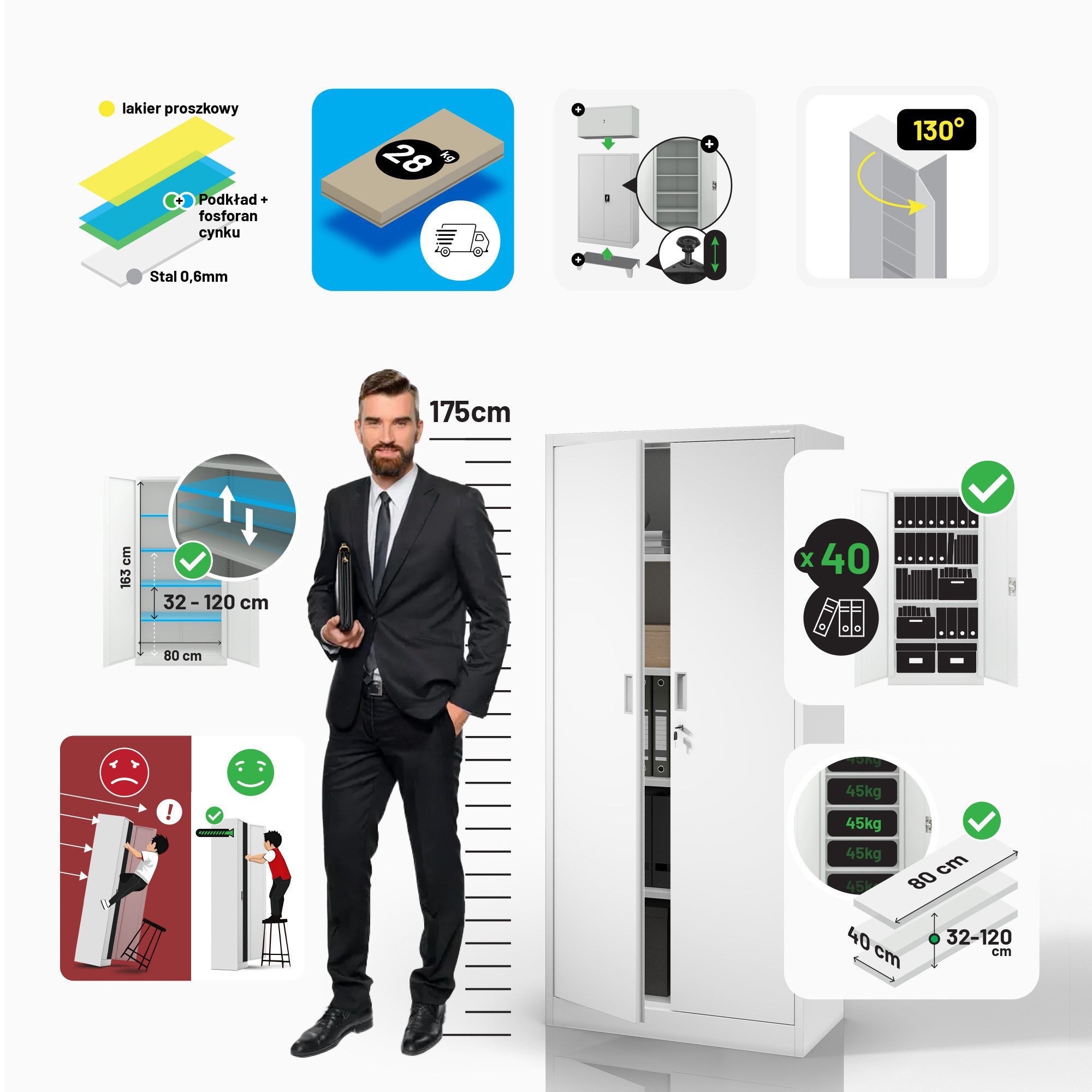 Kovová skříň JAN Compact 1750 x 800 x 400 mm, bílá