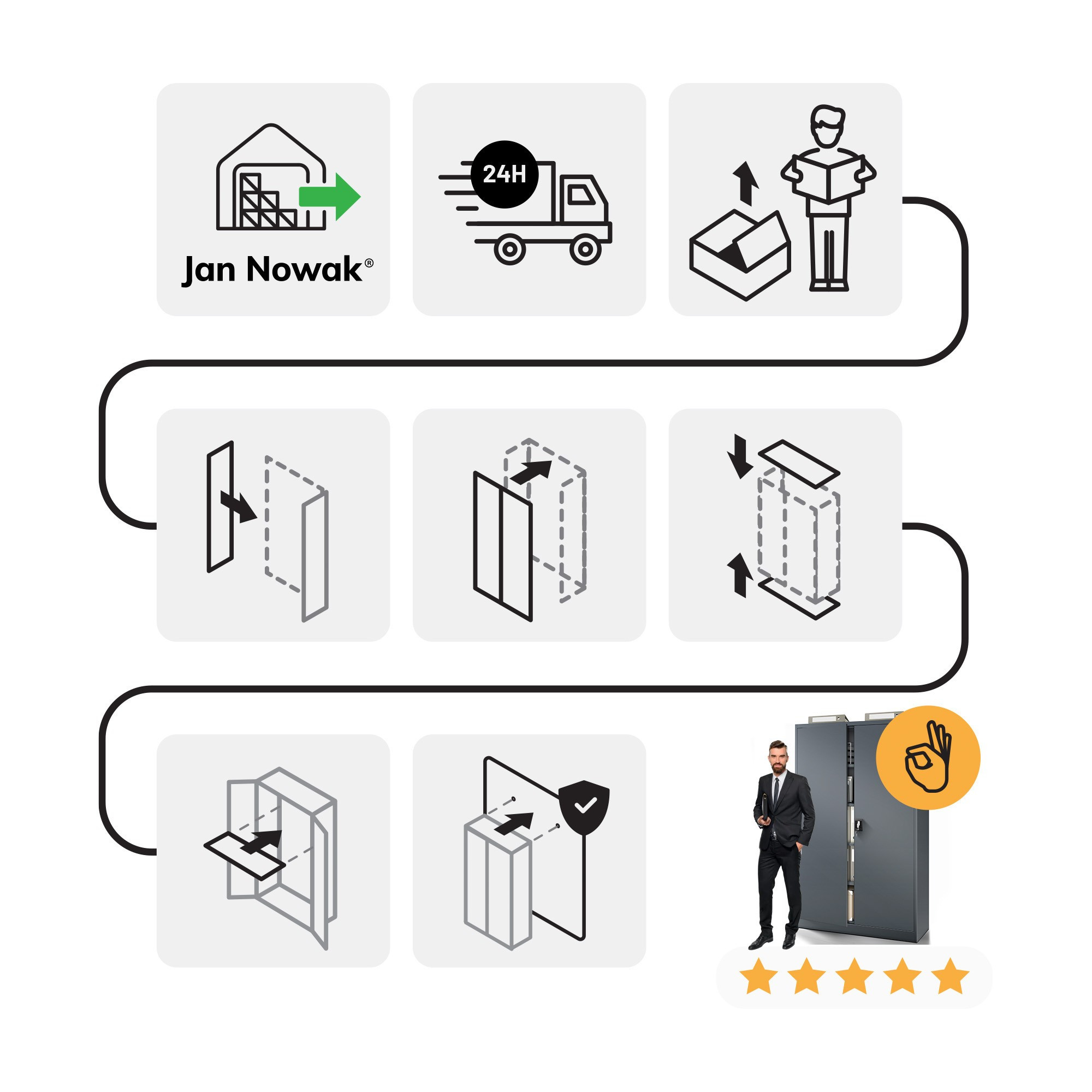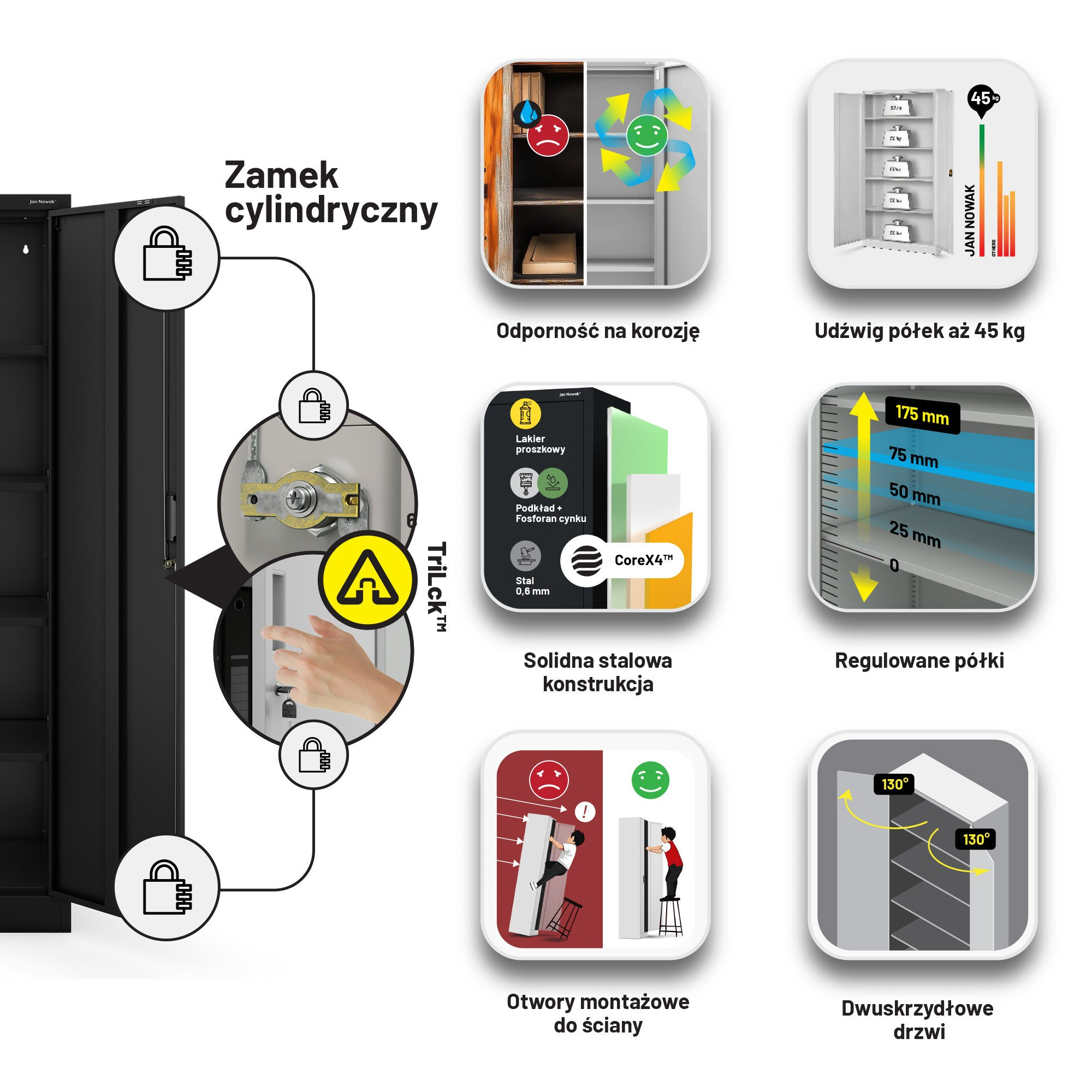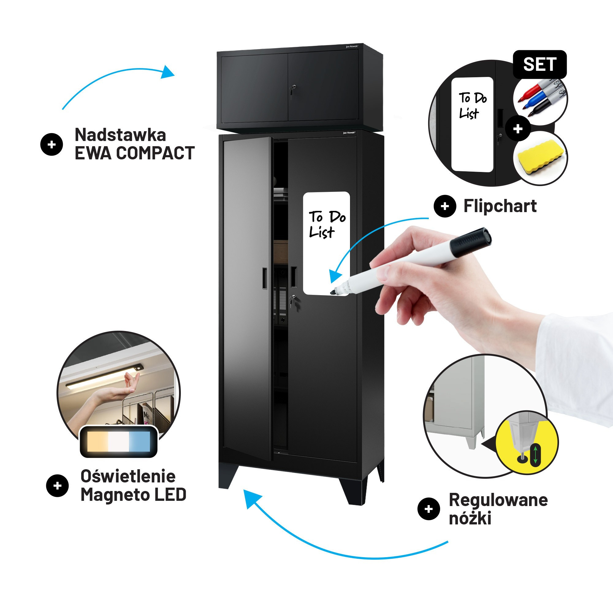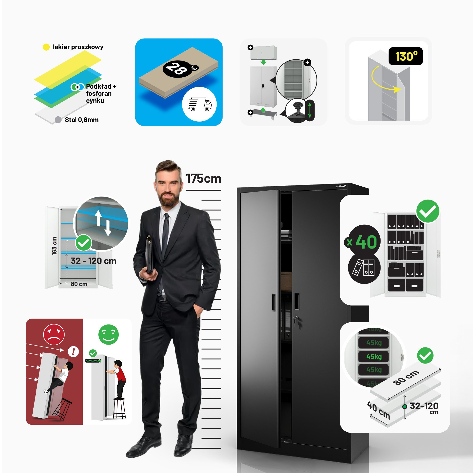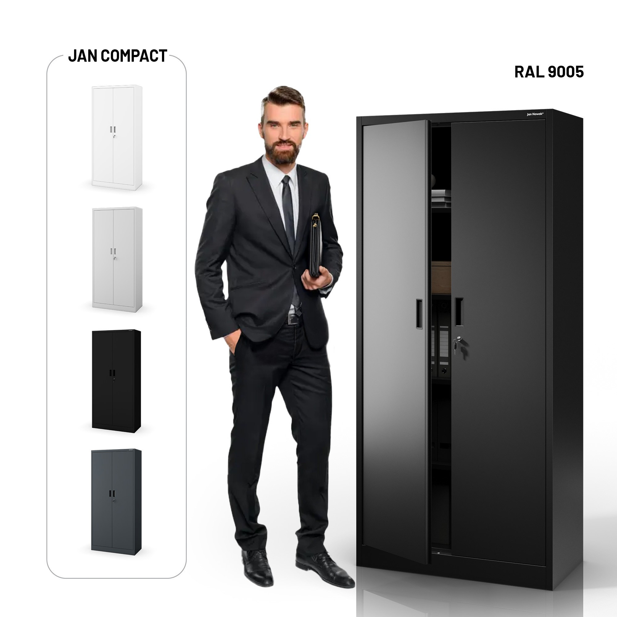 Kovová skříň JAN Compact 1750 x 800 x 400 mm, černá