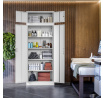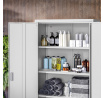 Vnitřní prostor skříně JAN Compact je vybaven 4 policemi s nastavitelnou výškou. Díky tomu si můžete uspořádání polic přizpůsobit přesně podle svých potřeb a ukládat předměty různých velikostí a tvarů. Ať už potřebujete uložit šanony s dokumenty, knihy, nářadí, oblečení nebo kancelářské potřeby, v skříni JAN Compact pro ně vždy najdete to správné místo.