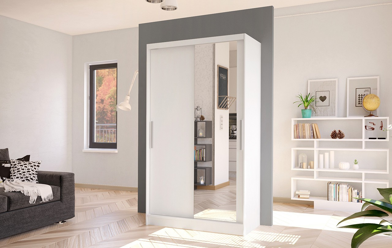 Korpus i dveře jsou vyrobeny z odolné 16 mm laminované desky s ABS hranami, které zajišťují dlouhou životnost. Posuvné dveře se hladce pohybují po hliníkových vodicích lištách. Skříň je dostupná v několika atraktivních barevných provedeních, takže ji snadno sladíte s ostatním nábytkem.