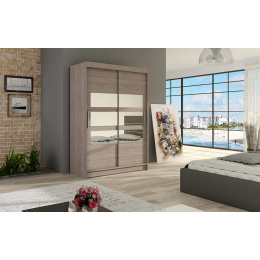 Moderní a elegantní design skříně osloví i náročné zákazníky. Eleganci podtrhují dlouhé stříbrné úchyty a moderní nádech dodávají zrcadla, která jsou nalepena na dveřích skříně. Je vyrobena z lamina o síle 16 mm a hrany jsou ukončeny ABS lištou. Vodící lišty jsou vyrobeny z odolného hliníku a splňují požadavky pro každodenní užívání. Díky svému uspořádání poskytuje dostatek úložného prostoru. Skvěle se hodí do ložnice, předsíně, dětského, nebo studentského pokoje. Skříň je dodávána v demontu a součástí je montážní plánek včetně všech potřebných spojovacích materiálů. Vyobrazené dekorace nejsou v ceně.