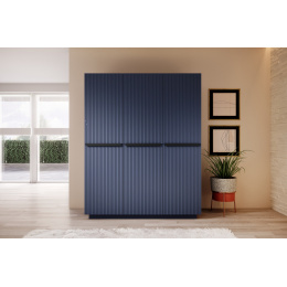 Skříň Nicole 150 cm - modrá MDF / černé úchyty