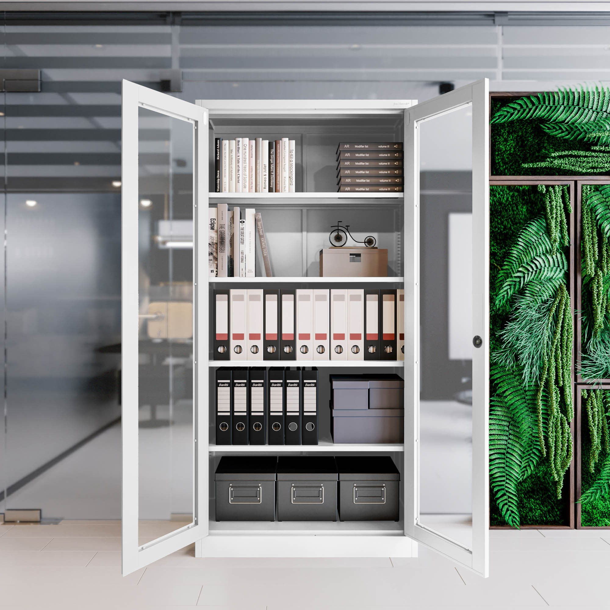 Kovová skříň s proskenými dveřmi AMELIA, 900 x 1850 x 400 mm, bílá